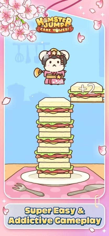 Hamster Jump: Kek Kulesi - evcil kemirgeninizle birlikte dev bir kek kulesi inşa edin! Oyun oldukça basit: hamster'ınız, sol ve sağdan gelen keklere çarparken zıplamak için tıklıyorsunuz. Zıplayarak, dünyadaki en yüksek kek kulesini inşa etmelisiniz. Sonrasında, ailenizle huzur içinde yaşayabileceğiniz kendi hamster malikanenizi inşa edebilirsiniz. Oyun sırasında, keklerinizi değiştiren kıyafetler, arka planlar ve lezzetler toplayabilirsiniz. Ama unutmayın: dikkat, en iyi arkadaşınızdır!