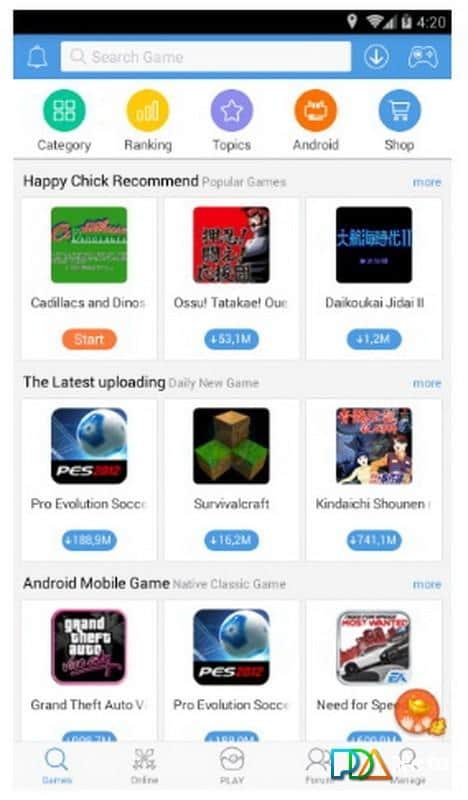 Mutlu Tavuk - PlayStation Portable, PlayStation, Nintendo 64, Nintendo DS, Nintendo Game Boy Advance, Sega Mega Drive/Sega Genesis, Super Nintendo Entertainment System, Multiple Arcade Machine Emulator, Wonder Swan Color, Game Boy color, Sega Dreamcast, Neogeo Pocket, PC Engine/TurboGrafx-16 Emülatörü, Open Network System ve oyun makinelerinin emülatörü gibi oyun platformlarında oyun oynamanızı sağlayan harika bir emülatör uygulamasıdır: