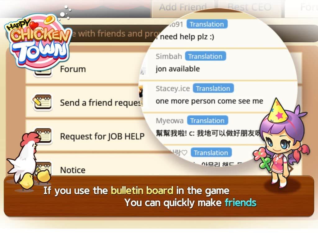 "Çiftlik" türü sanal dünyada uzun bir süre önce ve oldukça başarılı bir şekilde kendi nişini kazanmıştır. Ortaya çıktığı zamanlarda, basit oyunlar olan bu kaza tarzı oyunlar, oyuncuları basit oyun mekaniği ve renkli grafikleri ile çekmiştir. Çiftlikler geliştikçe daha karmaşık hale gelmiş ve zaman zaman şehir kurma simülatörleri ile rekabet edebilir hale gelmiştir, ancak o eski çiftlikler hâlâ güncelliğini korumakta ve günümüzde de talep görmektedir. Mutlu Tavuk Şehri, basit kontrol, birçok görev, karakterler arası etkileşim, geniş bir olanak yelpazesi ve renkli grafikleri ile klasik bir çiftlik oyunudur. Oynanış, üretim, yaratım, inşaat gibi unsurları bir araya getirirken, daha basit modelleri de içermektedir. Geliştiriciler sosyal unsurları da unutmadı ve arkadaşlarınızın veya diğer oyuncuların çiftliklerini ziyaret edebileceksiniz.