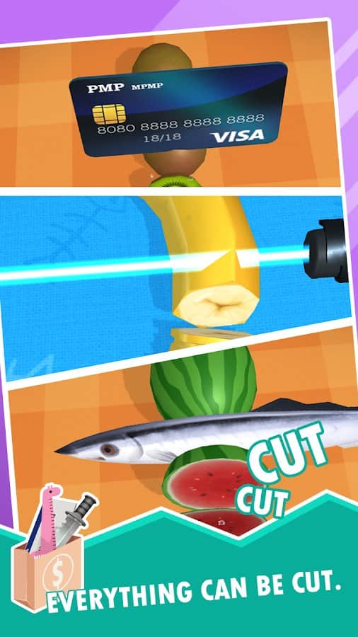 HappySlice – eğlenceli bir Android oyunu, burada çeşitli ürünleri sushi ustası gibi keseceksiniz. Elinize bir bıçak alın ve bununla sebzeleri ve meyveleri küçük parçalara kesin. Telefonunuzun veya tabletinizin ekranına mümkün olduğunca sık dokunun ve becerilerinizi geliştirmeye çalışın. Yiyecekleri küçük parçalara kesin ve oyunda 30'dan fazla türde bulunan yeni yiyecekler ve bıçaklar açmak için harcayabileceğiniz puanlar kazanın. Oyun, size bıçak olarak kullanabileceğiniz ilginç ve alışılmadık nesnelerle sizi sevindirecek, hatta çoraplarınızı bile kullanabilirsiniz.