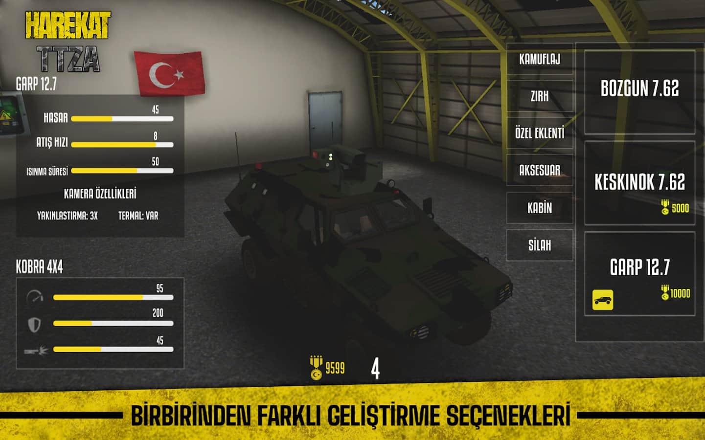 TTZA (Taktik Tekerlekli Zırhlı Araç) - Türkiye'deki askeri araç simülatöründe heyecan verici operasyonlara katılın. Harekat TTZA öncelikle Türk oyuncular için oluşturulmuştur, ancak sürekli gelişim ve oyunculara gösterilen dikkat sayesinde oyun yeni kullanıcıların dikkatini çekmektedir. Gerçek askeri operasyonların atmosferini yaratan otantik Türk sesleri. Oyunda, sanki olay yerindeymişsiniz gibi bir his oluşturan gerçekçi mekanlar ve şehirler bulunmaktadır;