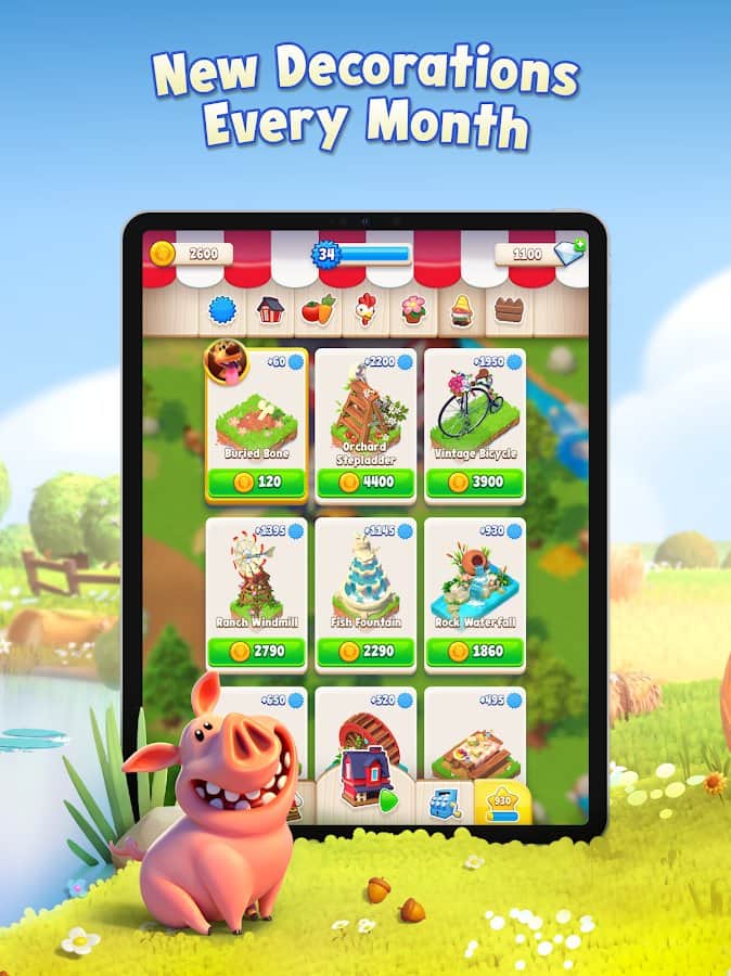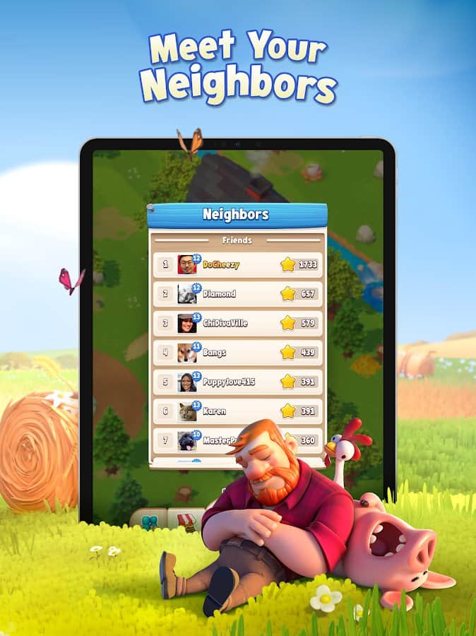 Canlı, geniş bir çiftlik, muazzam çeşitlilikte hayvanlar, evcil hayvanlar, şaşırtıcı dekorasyonlar, şık süslemeler, sıradışı bitkiler ve dünyanın dört bir yanından nadir tarım ürünleriyle dolu! Oyun sıkıcı ve monoton olmasın diye, sizi heyecanlı bulmacalar çözmeye, zafer kazanmaya ve çiftliğinizi düzenlemek için birçok bonus kazanmaya hazırlıklı olmalısınız! Harika grafikler, basit ayarlar, düşük sistem gereksinimleri ve dost komşular edinme imkanı, çiftlik yaşamının tadını çıkarmanıza yardımcı olacak!