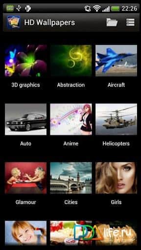Android için HD Duvar Kağıtları - akıllı telefonunuz için en güzel ve kaliteli duvar kağıtlarının tam bir arşivi. Burada kesinlikle masaüstünüz için uygun bir resim bulabilirsiniz. Uygulama 41 kategoriye ayrılmıştır - doğal manzaralar, hayvanlar, bilgisayar temaları, spor, sinema, şakalar ve daha fazlası. Uygulamanın başlıca avantajları: