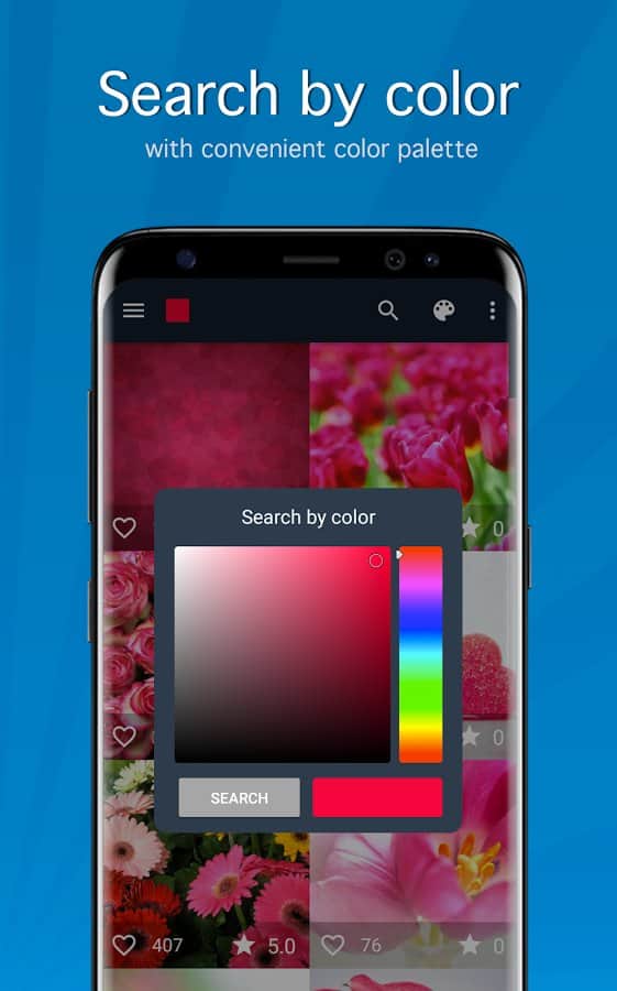 Etiketler ve renk paleti üzerinden arama, ihtiyaç duyduğunuz resmi bulmanıza yardımcı olacaktır. Paletten istediğiniz rengi seçin, "ARA" butonuna tıklayın ve karşınıza bu rengin baskın olduğu resimlerin bir listesi çıkacaktır. Etiketler ile arama, Rusça ve İngilizce dillerinde mevcuttur. Ayrıca, 65 kategori duvar kağıdı, gerekli arka plan seçimini kolaylaştıracaktır.