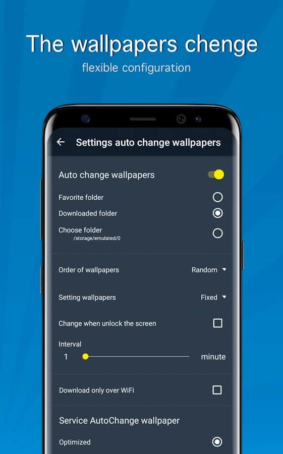 Duvar kağıdının otomatik değişimi, bu uygulamanın bir diğer özelliğidir. Duvar kağıdı kaynağını ve masaüstünde ne sıklıkla güncelleneceğini kendiniz seçebilirsiniz. Beğendiğiniz duvar kağıtlarını favorilere ekleyin, ayarlarda ilgili seçeneği işaretleyin ve ana ekranda otomatik duvar kağıdı değişiminin tadını çıkarın.