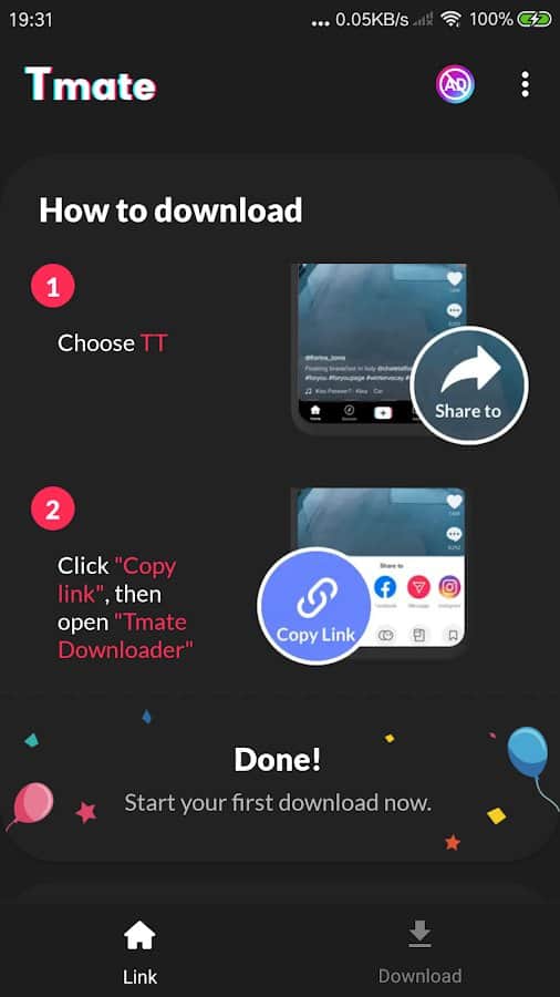 HD Tik İndirme Aracı Su İşareti Yok - TikTok kişisel hesabınıza giriş yapmadan ve bu sosyal ağın herhangi bir su işareti olmadan, beğendiğiniz videoları birkaç tıklama ile indirmenize olanak tanır. Videoyu, bağlantı veya 'Paylaş' butonu aracılığıyla indirebilirsiniz. İlk durumda, videonun bağlantısını kopyalayıp uygulamaya yapıştırıyorsunuz, ikinci durumda ise doğrudan uygulama ile paylaşıyorsunuz ve otomatik olarak indirmeye başlıyor. Kaydedilen dosyalar tek bir yerde saklanır, bu nedenle bunları yönetmek oldukça kolaydır.