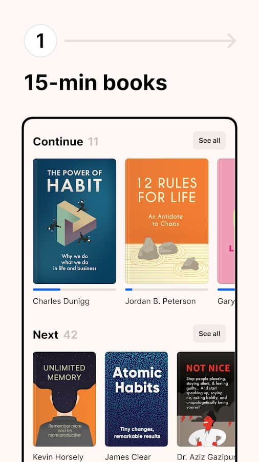 Headway: Kişisel Gelişim Challenge - Her gün sadece 15 dakikanızı kitap okumaya ayırın ve bunun alışkanlık haline geldiğini kendiniz bile fark etmeyeceksiniz; sonunda birçok faydalı kitap okuyacaksınız. Bu uygulamanın koleksiyonlarında belirli hedeflere yönelik birçok kitap bir araya getirilmiştir. Bu kitapları tamamen okuyabilir, özetlerini inceleyebilir veya sesli formatta dinleyebilirsiniz. Önemli alıntıları vurgulayın, belirli kelimeleri daha sonra çalışmak için sözlüğünüze ekleyin, gelecekte okumak istediğiniz bazı kitaplar için özel koleksiyonlar oluşturun ve okuduğunuz her kelimeyi derinlemesine düşünün.
