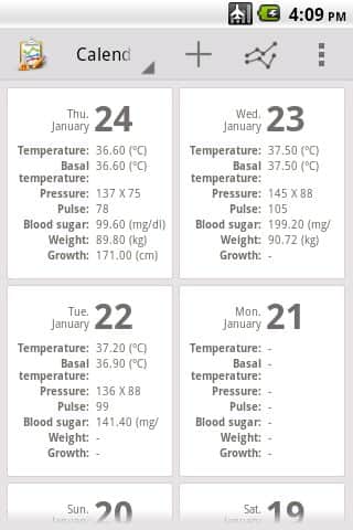 Sağlık Ölçüm Grafiği - insan vücudunun çeşitli ölçümlerinin değişimini kontrol etmeye yarayan bir uygulamadır. Aşağıdaki ölçümler dikkate alınır: genel sıcaklık, bazal vücut sıcaklığı, kan basıncı, nabız, kan şekeri seviyesi, kilo, boy. Verilerinize dayanarak günlük raporlar oluşturma imkanı vardır, ayrıca her bir ölçüm için grafikler ve diyagramlar oluşturma olanağı da bulunmaktadır. Uygulama, laboratuvar test sonuçlarını saklamanıza olanak tanır. Gerekirse, her zaman ihtiyaç duyduğunuzda okuyabileceğiniz notlar ekleyebilirsiniz. Zamanında testlerinizi unutmamak için hatırlatıcılar ayarlama imkanı da vardır.