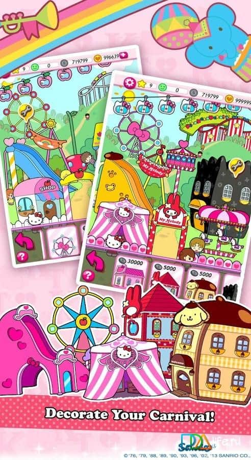 Hello Kitty Karnavalı - Android için bir oyundur, burada bir karnavala katılacaksınız. Kaydıraklar, dönme dolap, korsan gemisi, trampolin ve daha fazlası gibi birçok eğlence aracı sizin hizmetinizde olacak. Eğer acıkırsanız, Kitty'nin yardımcıları sizi en yakın atıştırmalık barına veya patlamış mısır arabasına götürecek.