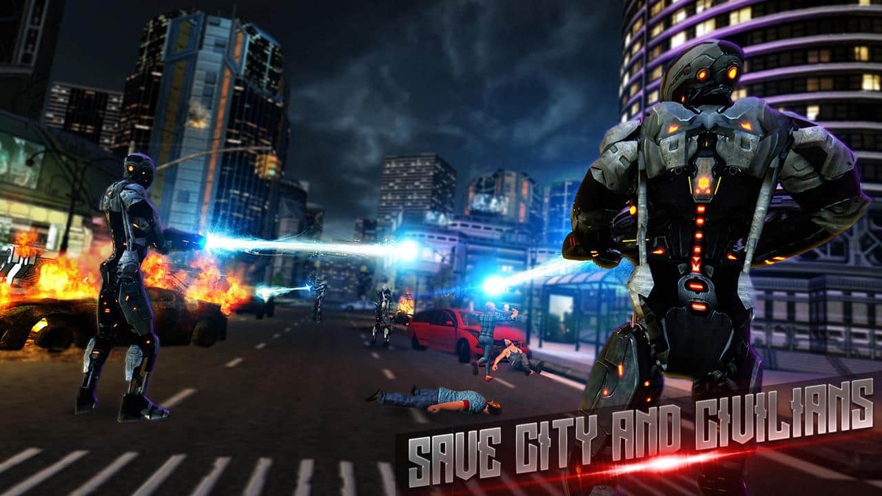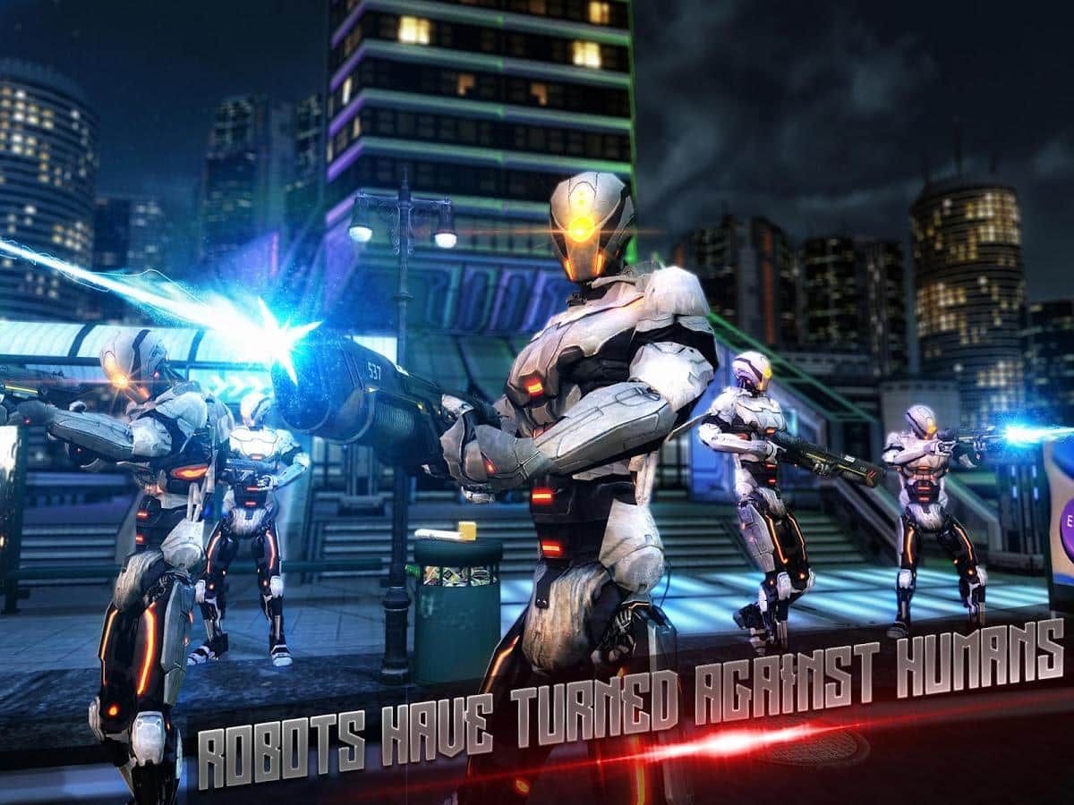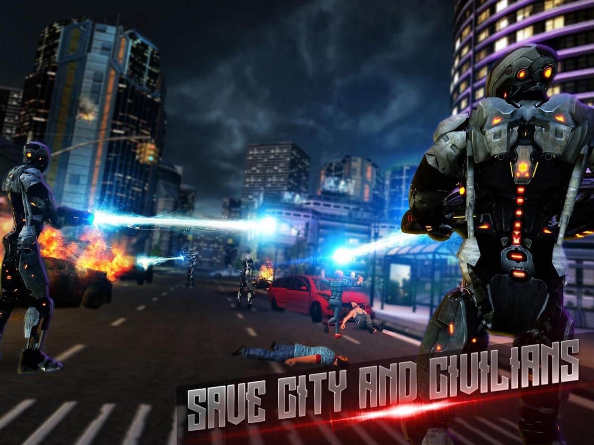 Kahraman Robot Savaşı – Android için heyecan verici bir aksiyon oyunu, burada yapay zekanın isyanını bastıracaksınız. Bu oyun sizi yakın bir geleceğe götürecek, burada bir askeri robot üretim şirketinde mühendis olarak çalışıyordunuz. Bir gün, tüm robotların programları değişti ve barışçıl insanları korumak yerine, insanları yok edilmesi gereken bir hedef olarak seçtiler. Artık göreviniz, modern silahlar kullanarak robotları yok etmek ve robotların yapay zekasından sorumlu ana bilgisayara ulaşmaya çalışarak çeşitli lokasyonlarda hareket etmektir. Oyunun tüm görevlerini yerine getirin ve kendinize yeni harika silahlar keşfedin.