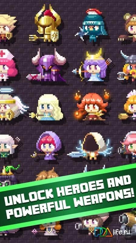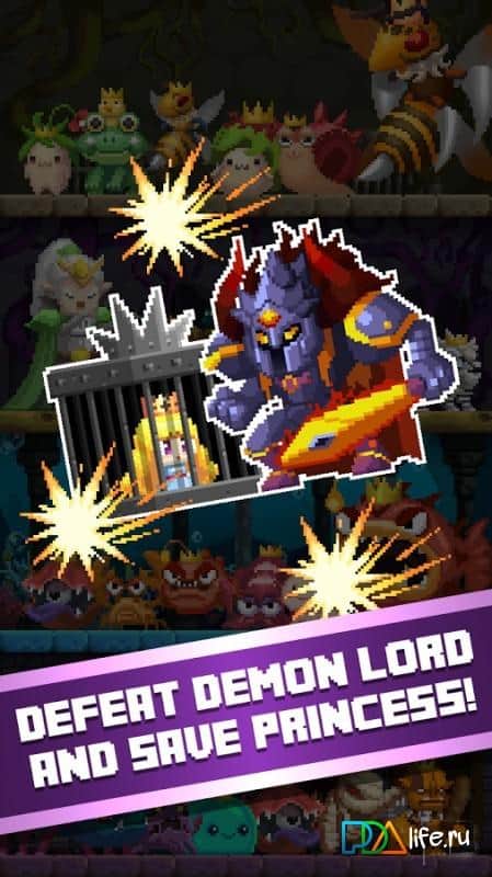Kahraman Takımı – piksel kahramanları ekibi her zaman prensesin yardımına koşar. Şeytan Kral güzel prensesi kaçırdı ve onu ulaşılması zor kalesine hapsetti. Ama bana sorarsanız, ulaşılması zor bir yer bile daha erişilebilir hale getirilebilir ;) Sadece çok çalışmak gerekiyor ve her şey yoluna girecek. Üç kahramanımız Savaşçı William, Rahibe Olivia ve Okçumuz Windstoker, düşmanlarla savaşmalı ve prensesi kurtarmak için canavarlara karşı geçmelidir. Onlarca zindan, 190'dan fazla canavar ve 10 dünya kahramanları bekliyor. Daha başarılı saldırılar için size 40'tan fazla silah türü ile büyük bir cephane yardımcı olacaktır.