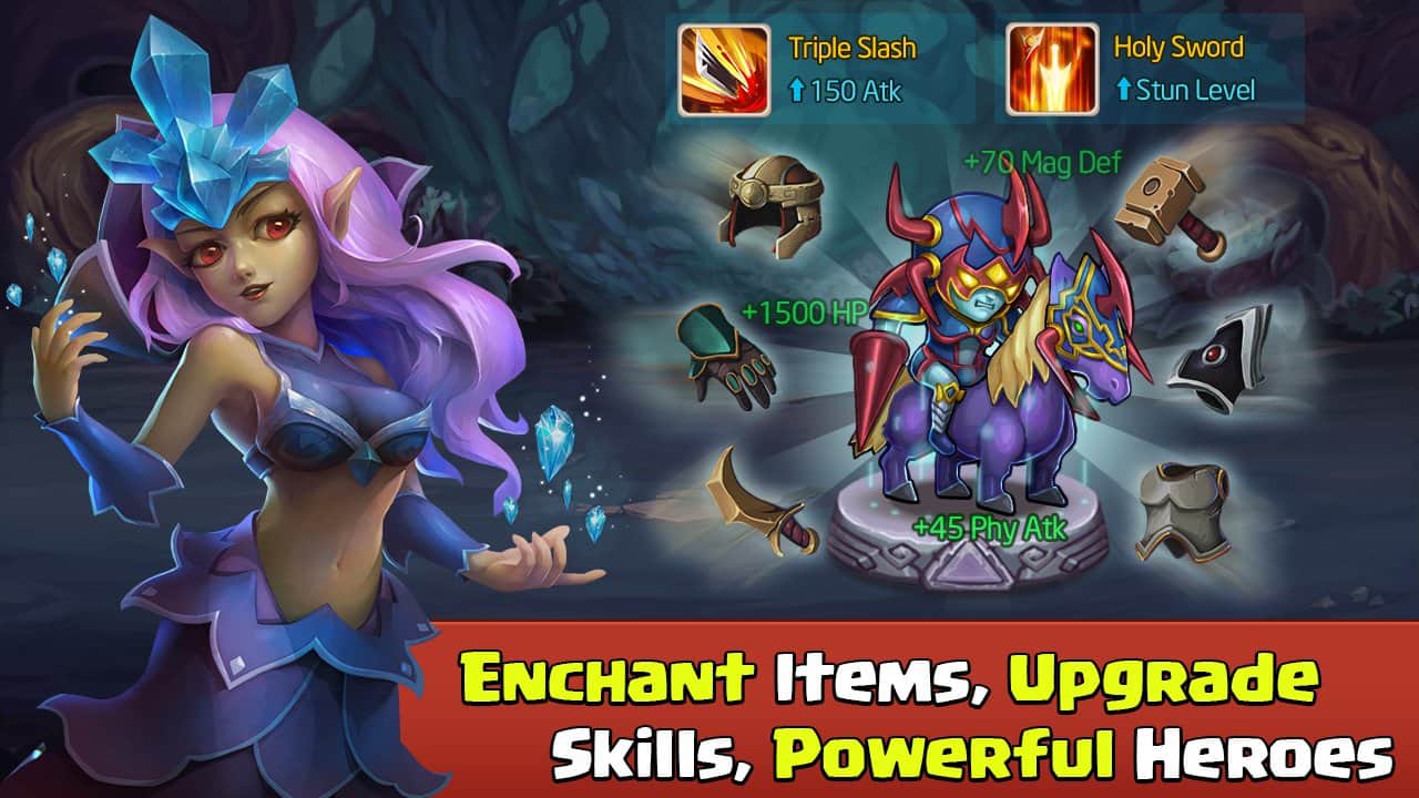 Kahramanlar Efsanesi - Tembel Savaş, Android için bir rol yapma oyunudur, burada cesur kahramanlar takımını yönetecek ve düşmanlarla savaşacaksınız. Bu oyundaki ana göreviniz düşmanları yenmek ve tüm dünyayı yıkımdan kurtarmaktır. Her biri benzersiz yeteneklere ve becerilere sahip cesur kahramanları ekibinize çağırın. Canavarlara, güçlü bosslara ve diğer düşmanlara karşı savaşa katılın ve hepsini yenmeye çalışın. Kahramanlarınızın yeteneklerini geliştirin ve onları daha güçlü hale getirerek yeni silahlar ve ekipmanlarla donatın.