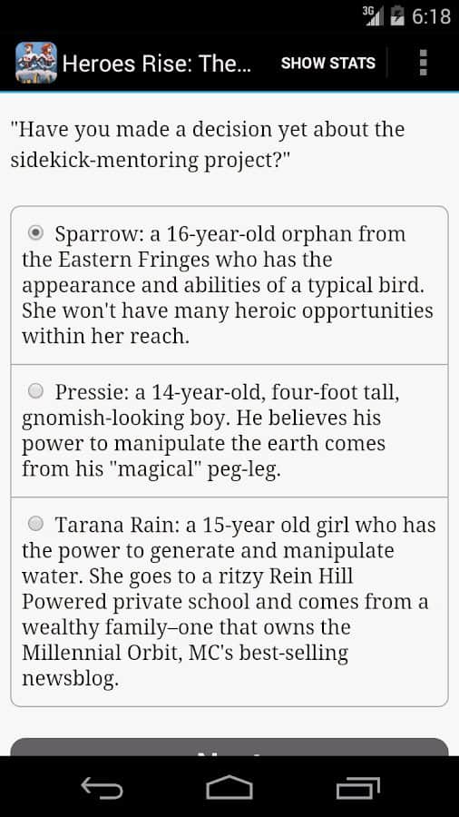 Kahramanlar Yükseliyor: Prodigy – efsanevi bir kahraman olmak isteyen bir karakteri yönlendireceğiniz, Android için interaktif bir roman. Bu oyunda karakteriniz List'e katılmayı hayal ediyor, ancak oraya ulaşmak için önce güçlü bir çeteyle savaşmanız, rakiplerinizle rekabet etmeniz ve tanınmış şampiyonlarla bir araya gelerek şehre gerçek bir kahraman olduğunuzu kanıtlamanız gerekiyor. Oyunun her bölümünde, nihayetinde oyunun sonucunu etkileyecek seçimler yapmanız gerekecek. Kendi hikayenizi yazın ve kaderinizi kendiniz seçin. Kahramanınızın adalet için mi yoksa silah ve para için mi savaşacağını, tanınmış kahramanlarla mı yoksa onlara karşı mı savaşacağını seçin.