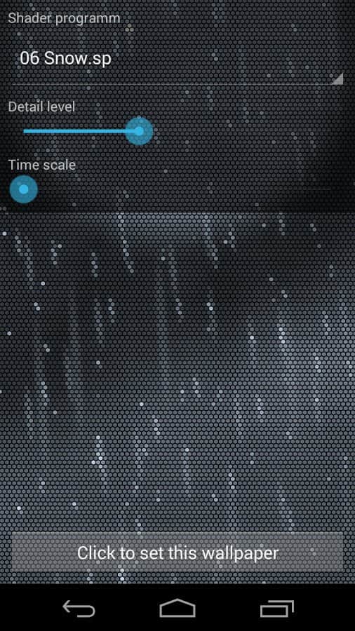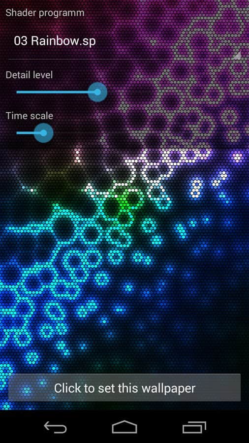 HexShaders – Android için shader programları kataloğu ile canlı duvar kağıtları. Bu duvar kağıtlarını telefonunuza veya tabletinize yükleyerek, cihazınızın performansını dikkate alarak benzersiz bir şekilde ekranınızda görüntülenecek duvar kağıtlarını seçebilirsiniz. Size uygun olan 12 program arasından seçim yapın ve ayarlar aracılığıyla animasyon hızını ve detay seviyesini ayarlayın. Sizi soyut dünyanın harika atmosferine sokacak hoş duvar kağıtlarının keyfini çıkarın; yağmur, kuyruklu yıldızlar, çeşitli girdaplar ve renklerin akışı gibi görüntüleri gözlemleyin. Ekranınızdaki her şeyi izleyin ve cihazınızın tüm performansını kullanın.