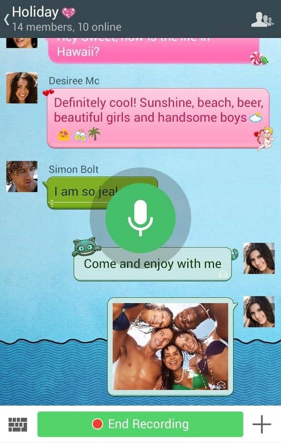 Merhaba - eğer akıllı telefonunuzda iletişimden maksimum duyguyu almak istiyorsanız, bu uygulama tam da ihtiyacınız olan şeydir. Sesli mesajlar gönderebilir, sohbete katılabilir ve daha fazlasını yapabilirsiniz; ihtiyacınız olan tek şey kablosuz internet erişimidir. Uygulamayı kullanarak en azından mesaj göndermede ve aramalarda tasarruf edebilirsiniz.