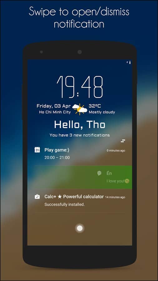 Hi Locker - Kilit Ekranınız - kullanım için özel olarak tasarlanmış bir kilit ekranı. Eski Android sürümlerindeki kilit ekranını, daha modern olan Android 5.0 Lollipop ve üzeri ile birleştirir. Kilit açma ekranında bildirimler bulunmaktadır. Böylece önemli hiçbir şeyi kaçırmazsınız. Program, kendinize göre ince ayar yapmaya oldukça açıktır. İsterseniz herhangi bir yazı girebilir veya kilit ekranında görünen kendi durumunuzu oluşturabilirsiniz - bu, kendinize hatırlatıcı koymanın veya harika bir motivasyon sağlamanın mükemmel bir yoludur. Gösterilecek bildirimleri kolayca silebilirsiniz.