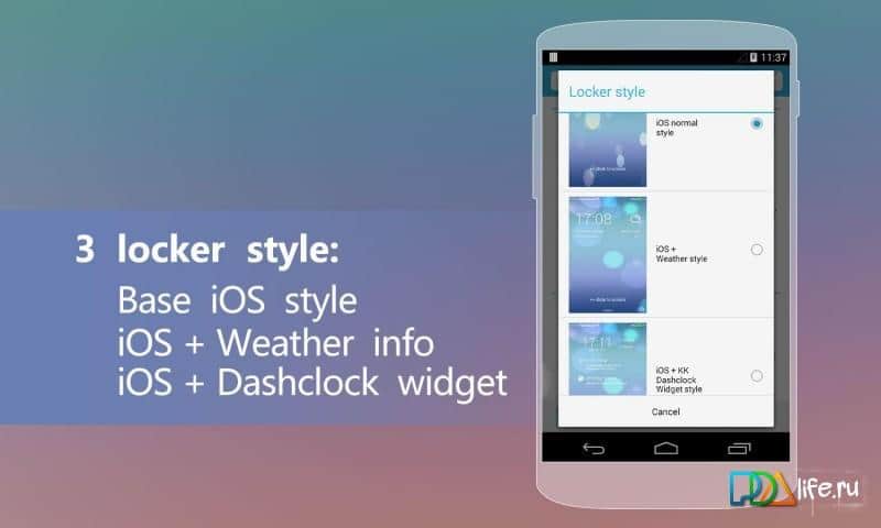 HI Kilit Ekranı - 3D Paralaks efektleriyle harika bir Locker. Uygulama mükemmel bir şekilde yapılmış ve küçük ekranlı mobil telefonlar ile büyük ekranlı tabletlerde harika görünüyor. Locker, üzerinde iOS 8 kurulu iPad ve iPhone'daki stile çok benzer bir tarz kullanıyor. Elbette, kullanıcı duvar kağıtları desteklenmektedir. Cihazınızın güvenliğini artırmak için PIN kodu ayarlama desteği bulunmaktadır. Kilit ekranından temel uygulamalara hızlı erişim: kamera, arama, saat, el feneri, hesap makinesi. Renk şemasını değiştirme desteği bulunmaktadır.