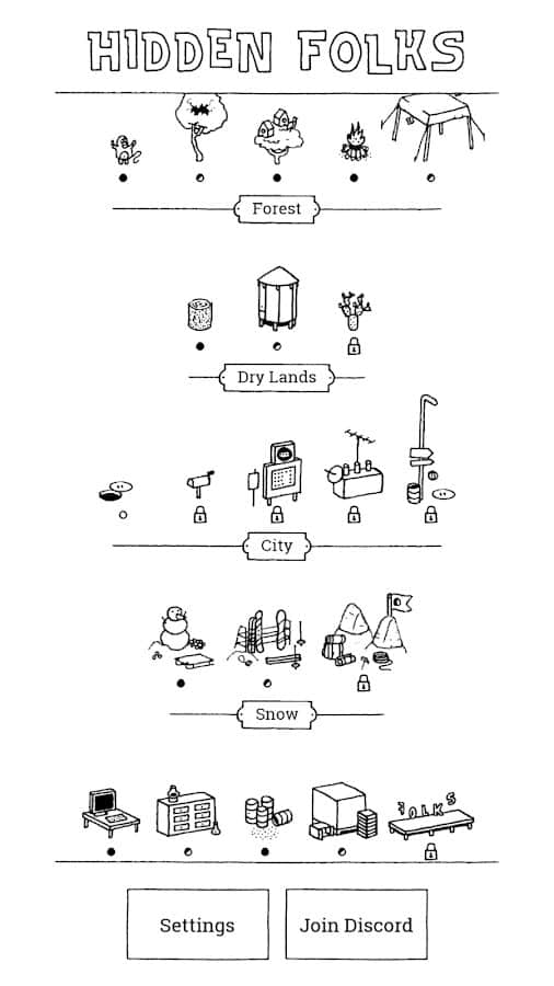 Öğeleri bulmak, mobil cihazlarda oldukça popüler bir yönelimdir; ancak bu alandaki projelerin büyük bir kısmı oldukça düşük kalitededir. Yine de, Hidden Folks gibi küçük şaheserler de bulunmaktadır. Oyunun genel amacı, saklanmış karakterleri bulmaktır, ancak oyunda bir dizi ilginç çözüm de mevcuttur. Tüm seviyeler elle çizilmiş monokrom bir tarzda, karakterleri sadece resmin içinde değil, aynı zamanda nesnelerle etkileşim kurarak, çadırlara girerek veya yaprakları iterek de arayabilirsiniz. Şüphesiz, bu proje boş zamanınızı eğlenceli ve faydalı bir şekilde geçirmek için mükemmel bir araçtır.