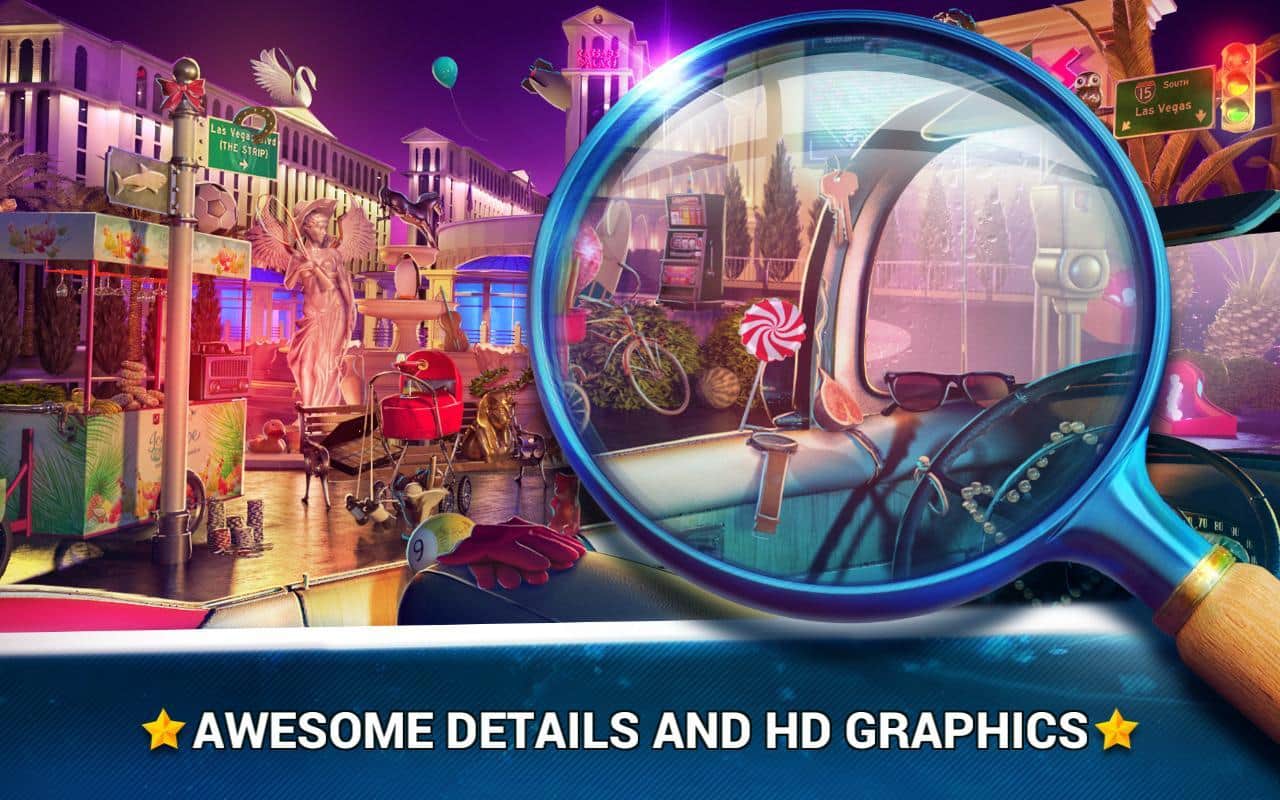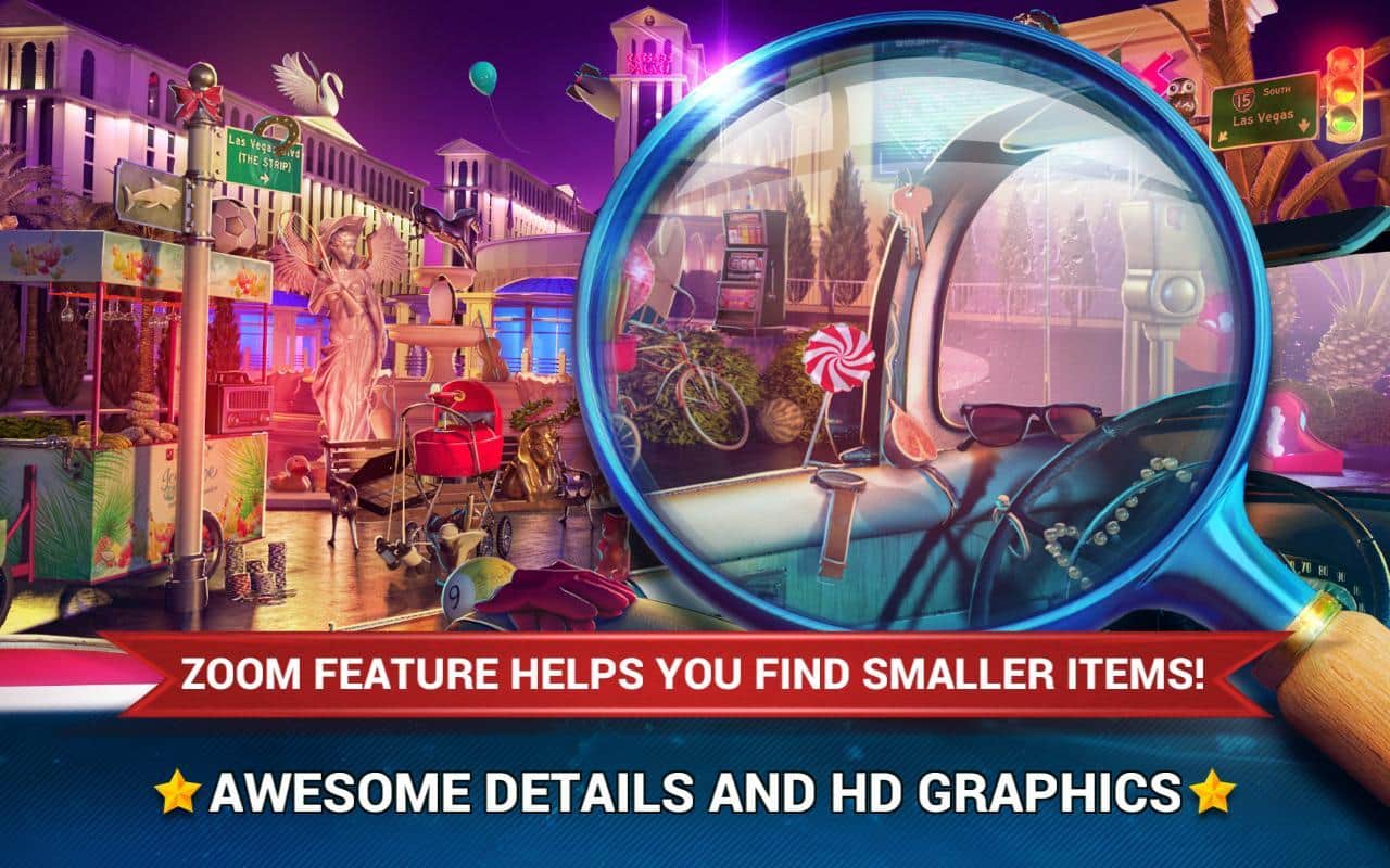 Gizli Nesne - Las Vegas Davası, gizli nesneleri arama üzerine eğlenceli bir bulmaca oyunudur. Eğer bu tür oyunları seviyorsanız, bu oyun tam size göre. Hemen oynamaya başlayın ve Las Vegas'ta seyahat ederken tüm nesneleri bulun. Bu oyun, sizi birçok farklı lokasyon, harika grafikler ve 2000'den fazla farklı nesne ile mutlu edecek. Tüm nesneleri toplamak ve bir sonraki seviyeye geçmek için tüm zekanızı ve dikkatinizi kullanın. Nesneleri bulma görevini, ipuçları ve belirli bir alanı büyütmek için zoom fonksiyonu kolaylaştıracaktır.