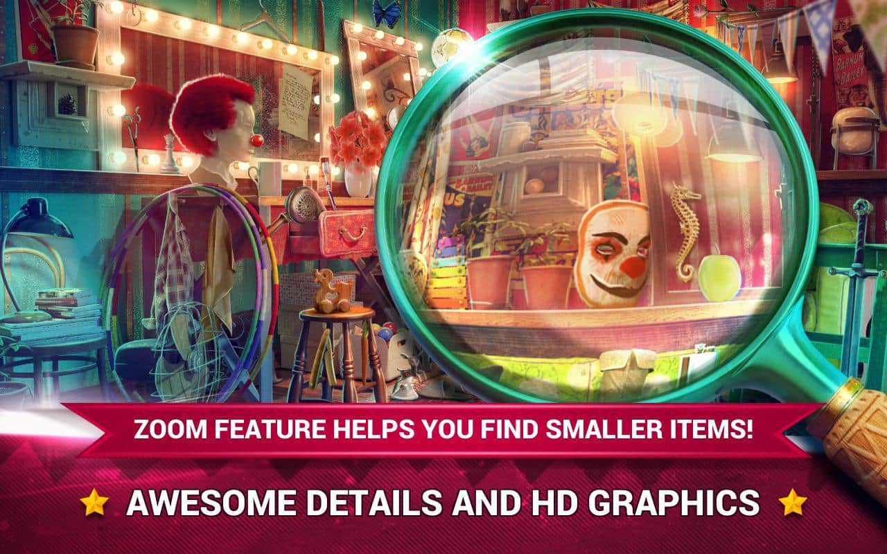 Gizli Nesneler – Sirk – saklı nesneleri bulma konusunda heyecan verici bir oyundur. Eğer bu tür oyunları seviyorsanız, bu oyun sizin için yapılmıştır. Telefonunuza veya tabletinize kurun ve harika grafiklerin ve mükemmel müzik eşliğinin tadını çıkarın. Bu oyunda Charlie adında bir palayla tanışacak ve ona nesneleri bulmasına ve sirkin tüm sırlarını açığa çıkarmasına yardımcı olacaksınız. Önünüzde, aranan birçok nesneyle birlikte çeşitli mekanlar açılacak. Yakınlaştırma işlevini kullanarak resmi büyütün veya uzaklaştırın, böylece ihtiyaç duyduğunuz tüm nesneleri daha hızlı bulabilirsiniz. Bu oyunu boş zamanlarınızda oynayın ve maksimum keyfi alın.