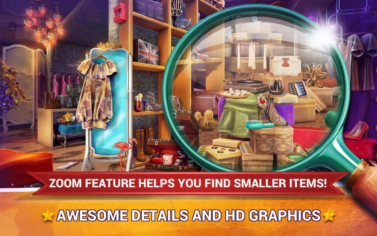 Gizli Nesneler Moda Mağazası – kızlar için android'de bir oyun, burada alışveriş yapacaklar. Bu oyunda modaya uygun kıyafetler ve aksesuarlar ile dolu bir mağazaya gideceksiniz. Göreviniz, büyük çeşitlilikteki eşyalar arasında butikteki en moda ve özel modelleri bulmaktır. Belirtilen eşyaları bulmak için mağazanın her köşesini ve vitrinlerini dikkatlice inceleyin. Bir nesneyi mümkün olan en hızlı şekilde bulmak ve seviyeyi geçmek için ipuçlarını ve büyüteç işlevini kullanın. Alışverişin tadını çıkarın ve oyunda sunulan 2000'den fazla çeşitli nesneyi bulun. Oyun, oyunculara harika canlı grafikler, çok sayıda eşya ve heyecan verici bir oyun deneyimi sunacak.