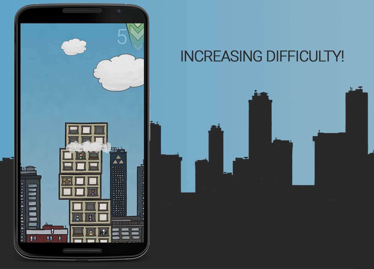 Yüksek Bina – şehir merkezinde yüksek binalar inşa etmeye yönelik bir android arcade oyunudur. Bu oyunda, size yüksek binalar inşa etmeniz gereken bir çizgi film dünyasına gireceksiniz, binanın katlarını dikkatlice üst üste yerleştirerek. Katlar gökten düşer ve onları devrilmeden tutmak için cihazınızı eğmeniz gerekir. Mümkün olduğunca uzun süre dayanmayı deneyin ve bu oyunda dünya rekorunuzu koyun. Yükseklere çıkın ve kolay kontrol ile hoş grafiklerin tadını çıkarın. Eğer binanız yine de düşerse, tüm parçaları yanacak ve şehirde bir yangın çıkaracak, bunu önlemeye çalışın.