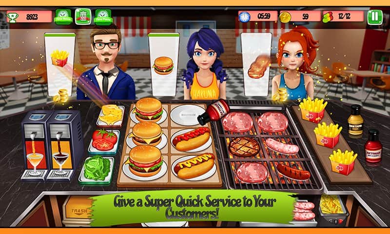Lise Mutlu Restoran - Yemek Oyunları – Android için bir oyundur, burada okul kafesinde şef olarak görev alacaksınız. Bu oyunda amacınız, misafirleriniz için çeşitli yemekler ve atıştırmalıklar hazırlamaktır. Talepkar misafirlerin siparişlerini alın ve en lezzetli hamburgerleri, sosisli sandviçleri ve diğer hızlı yemekleri hazırlayın. Çeşitli ve taze malzemeler kullanın ve yemekleri belirli bir sırayla hazırlayın. Para kazanın ve bunları kafe için yeni ekipman satın almak ve misafir salonunu geliştirmek için harcayın. Yeni tarifler keşfedin ve müşterileri aç bırakmayın.