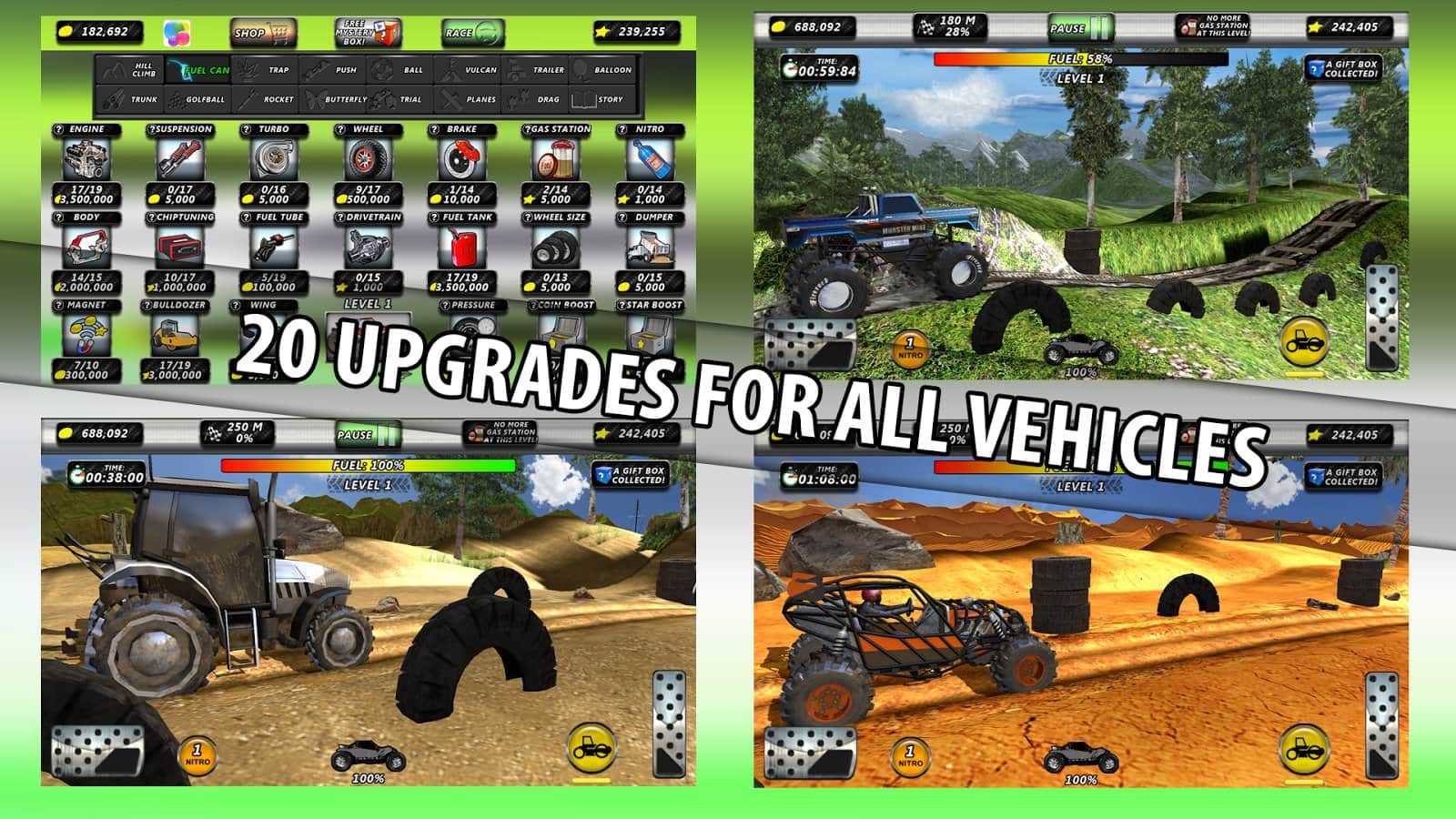 Tırmanma Ayarları Şampiyonası – Magic Pixel KFT'den harika bir off-road yarışı. Arazi aracınızla tüm tehlikeli parkurlardan geçecek ve aracınızın finish çizgisine sağlam ve hasarsız ulaşmasını sağlayacaksınız. Parkurlar her zaman size nazik olmayacak, tehlikeli alanlar ufukta birer birer belirecek. Aracın birçok parçasını güncelleme imkanı.