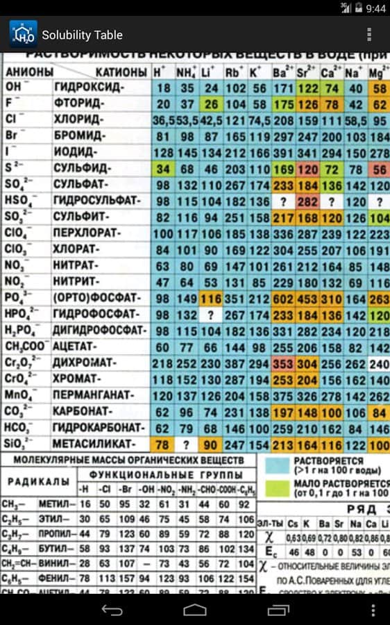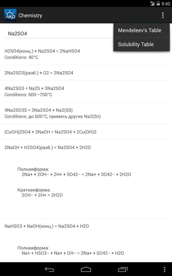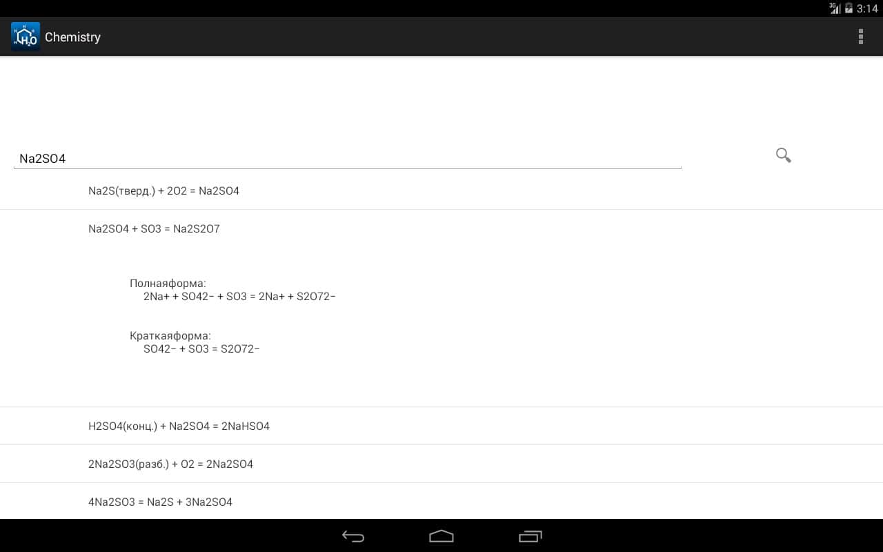 Kimya – Denis Chaschin tarafından geliştirilen Android için harika ve vazgeçilmez bir uygulama olup, kimyasal zincirlerin, birden fazla bilinmeyenli denklemlerin çözümünde öğrenciler için gerçek bir buluş olacaktır. Ayrıca organik kimya formüllerinin gösterimi ve iyonik reaksiyonların aranmasını içerir. Uygulama ayrıca Periyodik Tablo ve maddelerin çözünürlük tablosunu da içermektedir. Kullanın!