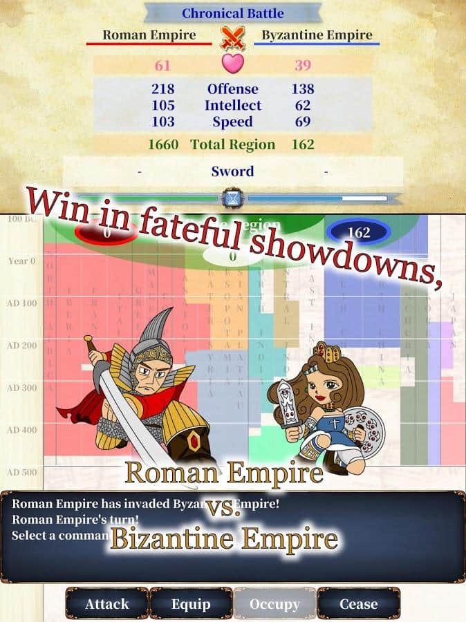 Tarih Fethedici – zamanın içinde yolculuk yapın ve dünyanın fetihlerinin kronolojisinde ilerleyin. Stratejilere katılın ve M.Ö. döneminde savaşın, en destansı savaşları geçin ve renkli bir hikaye ile canlı grafiğin tadını çıkarın. Yeteneklerinizi geliştirin ve becerilerinizi artırın, her zaman diliminden ganimetler toplayın ve farklı kabileleri ve halkları fethedin. Stratejinizi ve savaş taktiğinizi düşünün, mevcut silahları ve kurnaz manevraları kullanın, bölgeleri keşfedin ve hayatta kalmak için gerekli kaynakları toplayın.