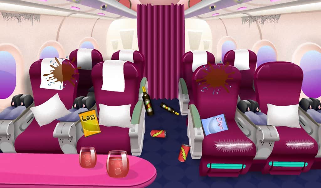 Tatilde Uçak Temizliği - kızlar için bir oyun, burada temizlik ekibine uçağı seferden sonra temizlemesi için yardımcı olacaklar. Hepimiz seyahat etmeyi ve yeni ülkelerde bulunmayı seviyoruz, ve seyahat etmenin en iyi yolu uçaktır. Ancak uçakta geride bıraktığımız çöpleri hiç düşünmedik ve şimdi temizlik işini üstlenme ve uçağı bir sonraki sefer için hazırlama zamanı. Çöpleri toplayın, zeminleri, perdeleri, koltukları ve pencereleri temizleyin, ayrıca halıları elektrik süpürgesi ile süpürün ve lekeleri çıkarın. Uçak, işinizden sonra temiz olmalı, bu yüzden yolcuların bu uçakta keyifle seyahat etmeleri için her yeri temizlemeyi unutmayın.