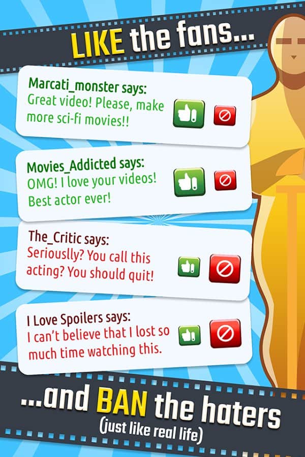 Hollywood Milyarderi – android için bir oyun, burada popüler bir film stüdyosunu kontrol altına alacaksınız. En iyi gişe rekorları kıran filmleri çekin, en ünlü aktörleri çekim için davet edin ve stüdyonuzun reytinglerini zirveye taşıyın. En ünlü senaristleri işe alın ve çeşitli türlerde ödül almaya değer filmler çekin. Eleştirmenlerden heyecan verici yorumlar alın, birçok etkinlik ve organizasyona katılın ve masalsı ücretler kazanın. Yeni yıldızlar bulun ve onları filmlerinizde oynatın. Sinema kameranıza olabildiğince sık basın ve izleyicilerin beğeneceği ilginç filmler ve diziler çekin.