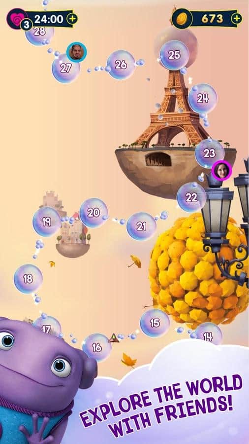 Oyun dünyası DreamWorks Animation stüdyosunun 'Ev' adlı çizgi filmine benzer şekilde tasarlanmıştır