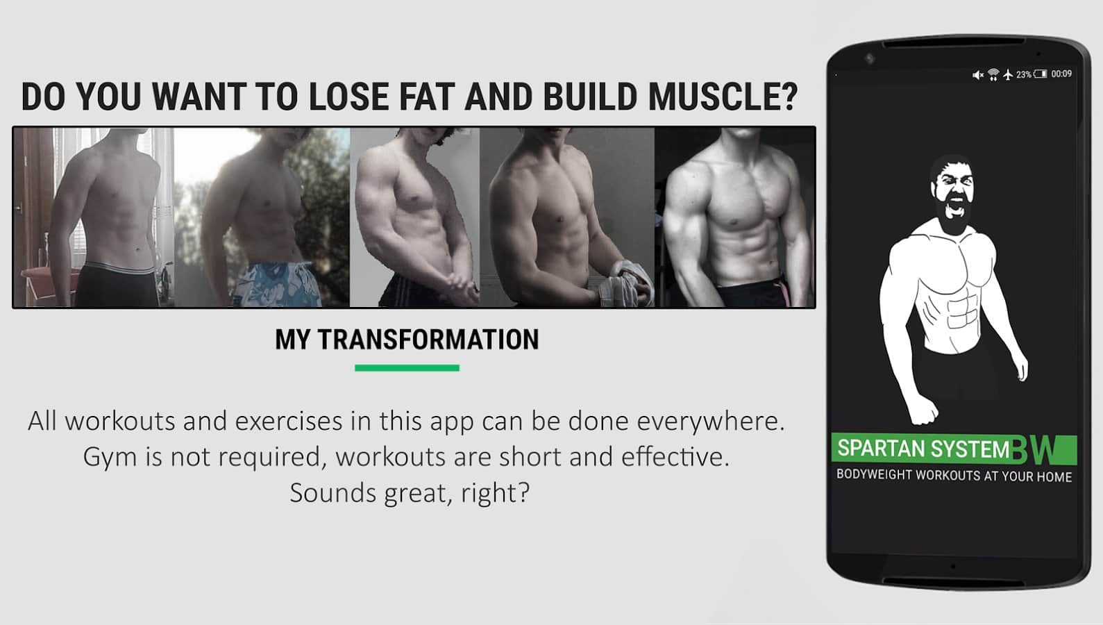 Evde Antrenman MMA Spartan Pro - Gerçek bir Spartalı kadar sağlıklı ve güçlü olmak mı istiyorsunuz, yoksa sadece filmleri izleyip aynı şekilde kaslı mı olmak istiyorsunuz? Bu uygulama ile güçlü ve iri olmak oldukça mümkün! Tek yapmanız gereken kendinize sıkı bir program belirlemek ve buna her zaman uymaktır. Sadece programınızı takip etmekle kalmayacak, aynı zamanda hangi egzersizleri yapmanız gerektiğini ve hatta bunları nasıl doğru yapacağınızı da görebileceksiniz.
