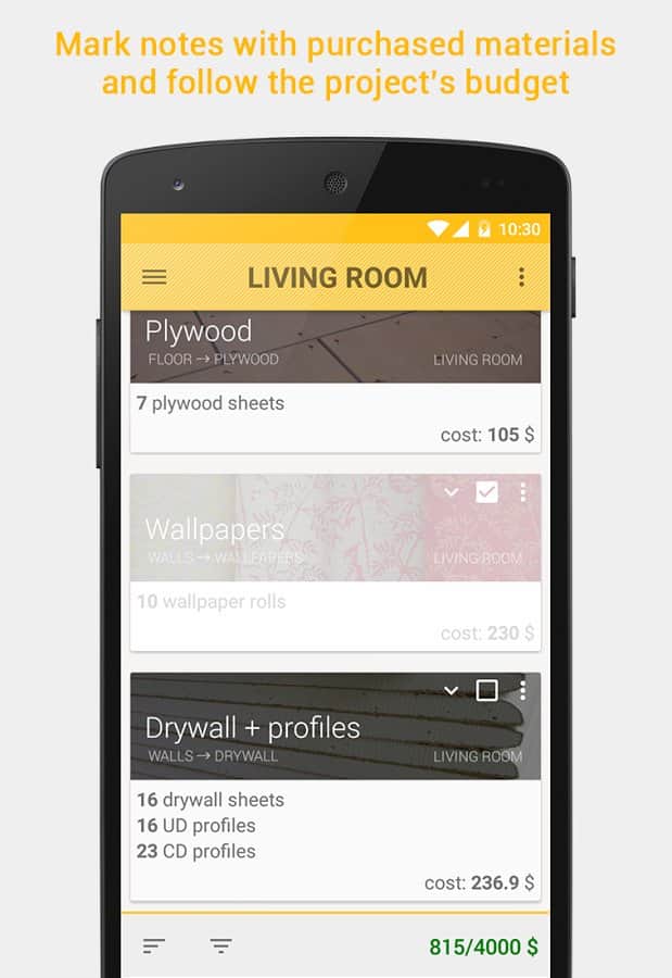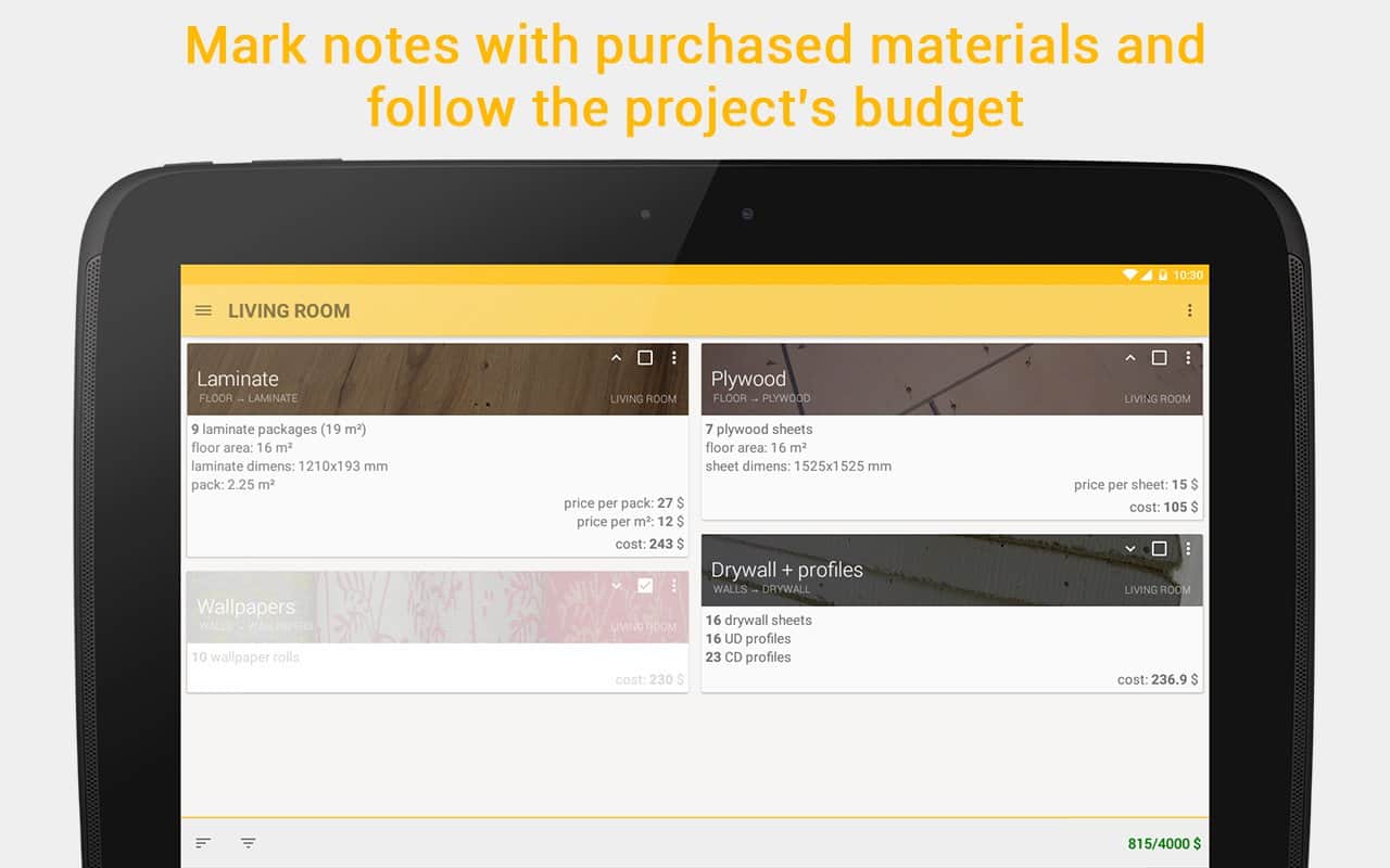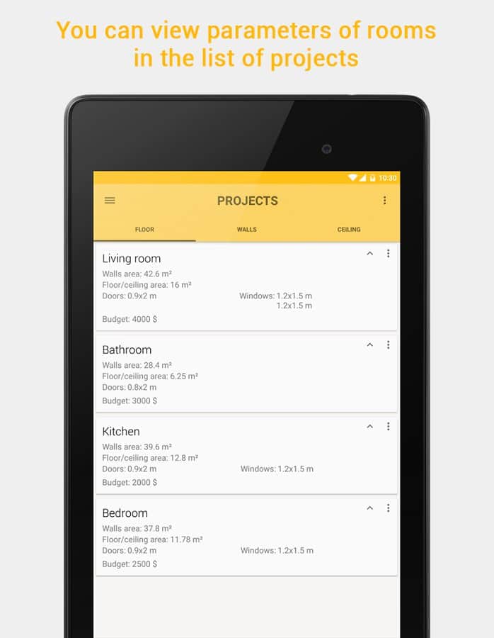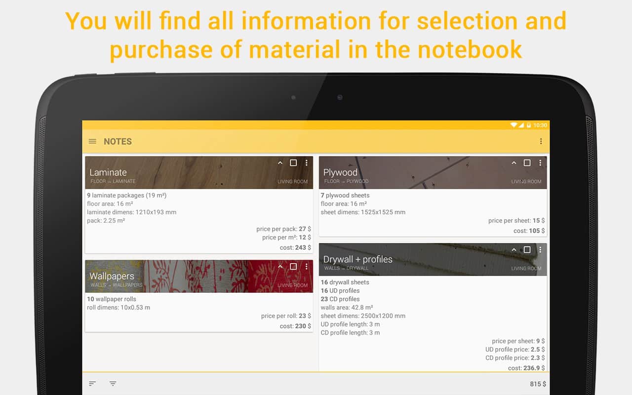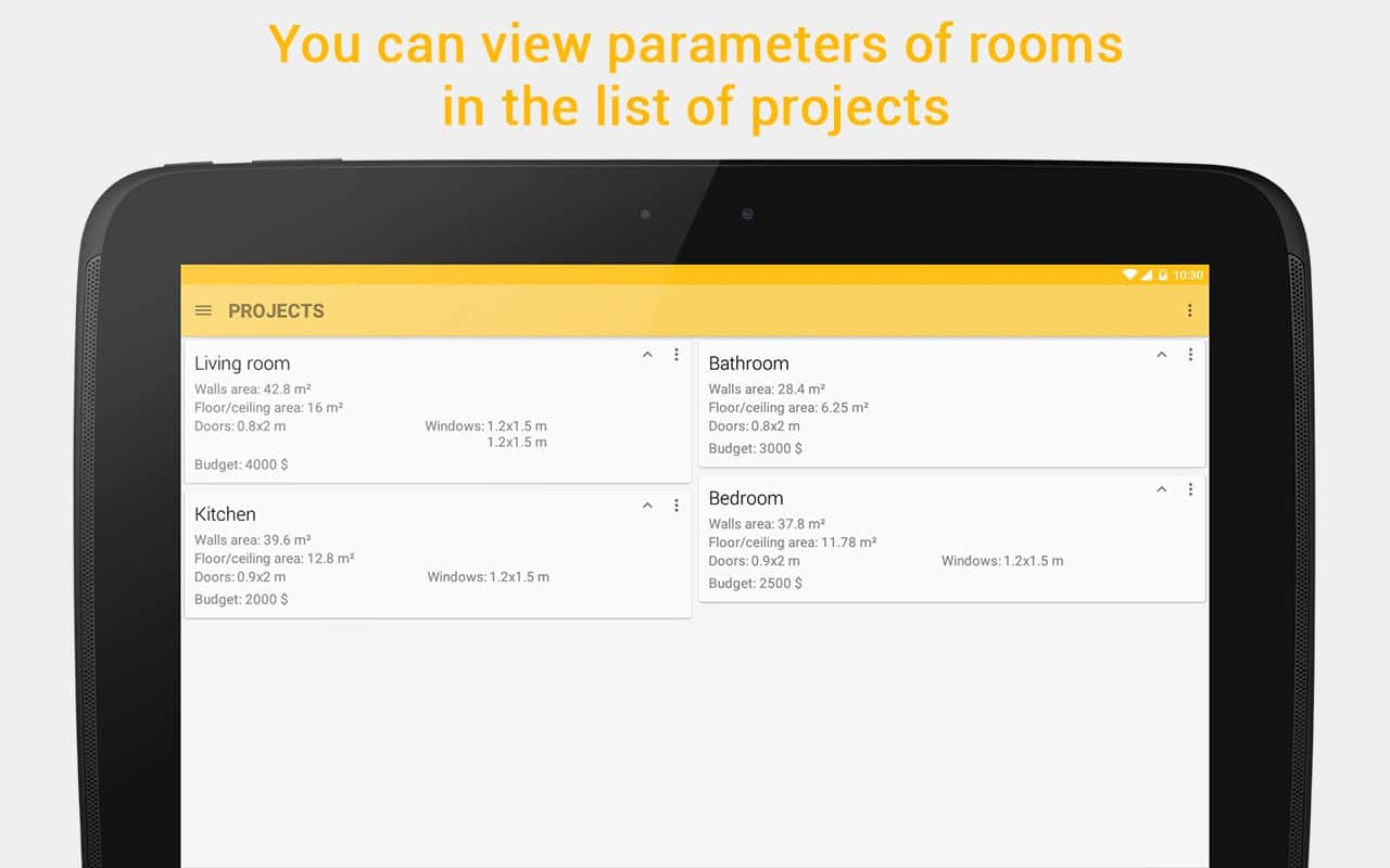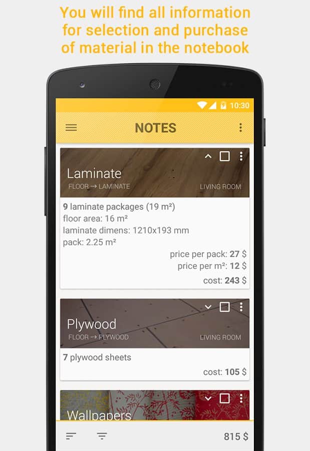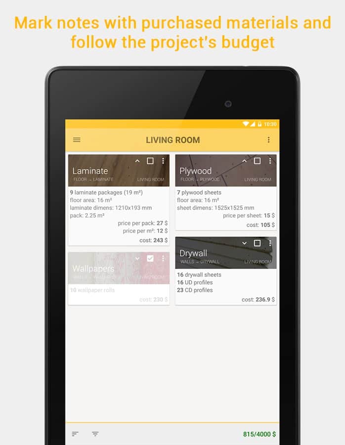 HomeRepair – A4DROID geliştiricilerinden onarım yapmayı planlayan insanlar için Android'de mükemmel bir uygulama. Bu uygulama sayesinde gerekli dekorasyon malzemesinin miktarını kolaylıkla hesaplayabilirsiniz, bu da tasarruflarınızı önemli ölçüde artırabilir.