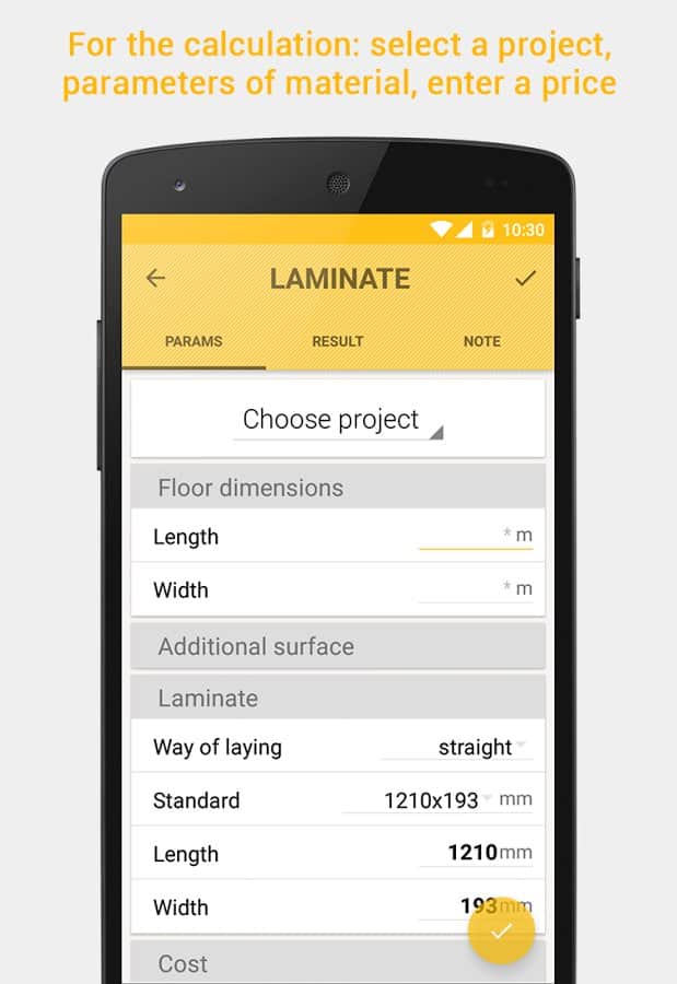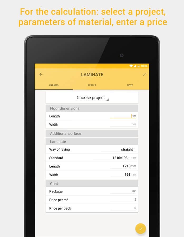 - Şu anda, duvar kağıdı, yer karosu, mutfak arka planı karosu, boya, laminat gibi malzemelerin miktarını hesaplayabilirsiniz