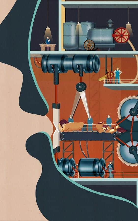 Homo Machina – Android için heyecan verici bir bulmaca oyunu, burada insan vücudunun derinliklerine unutulmaz bir yolculuğa çıkacaksınız. Bu oyunda, sinirler, damarlar ve kapaklardan oluşan muhteşem bir sisteme dalacaksınız ve çeşitli işler yaparak ilginç görevleri yerine getireceksiniz. Ana hedefiniz, insan vücudunun tüm işlevlerini yerine getirmesini sağlamak ve günlük faaliyetlerini sürdürmesini sağlamak olacak. İnsan gözlerini açacak, müzik dinleyecek, sandviç yiyecek ve işe gidecek. İşçi ordusunu, tüm mekanizmaları yönetmeleri ve görevlerini yerine getirmeleri için harekete geçirin.