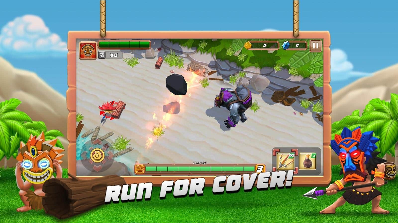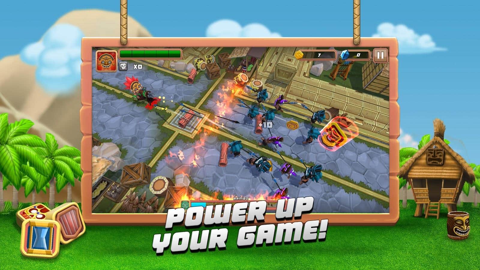 Hoogah – sizi Tiki dünyasına götürecek heyecan verici bir Android oyunu. Bu gizemli dünya, temelde eğlenceli insanlar ve canavarlara sahip kötü parkların bir arada yaşadığı büyük bir adadır. Bu adanın tamamı ikiye bölünmüş durumda ve göreviniz kendi adanızın kısmını korkunç canavarlardan ve düşmanlardan korumaktır. Ateş tuzakları kurun, savunma totemleri inşa edin ve düşmanlara mızrak fırlatın. Bu oyunda mümkün olduğunca uzun süre dayanmayı ve adanızın kısmını işgalcilerden korumayı başarmaya çalışın. Ayrıca, zor durumlarda hayatta kalmanıza yardımcı olacak paraları ve bonusları toplamayı unutmayın.