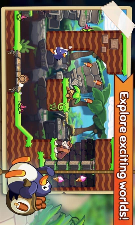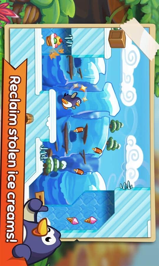 Zıplayan Penguen - penguene lezzetli dondurmaları toplamasında yardımcı olacağınız eğlenceli bir platform oyunu. Penguenin tüm dondurmaları çalındı ve şimdi hırsızı bulup tüm dondurmalarını geri almak için yolunu takip etmesi gerekiyor. Bu oyunda sizi, buzlu Antarktika'dan sıcak ormanlara kadar birçok farklı dünya bekliyor. Tek dokunuşla kolay kontrol, birçok düşman ve çeşitli bonuslar, bu tür oyunların meraklılarını mutlu edecek.