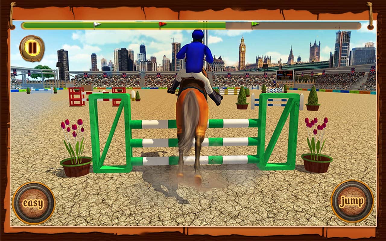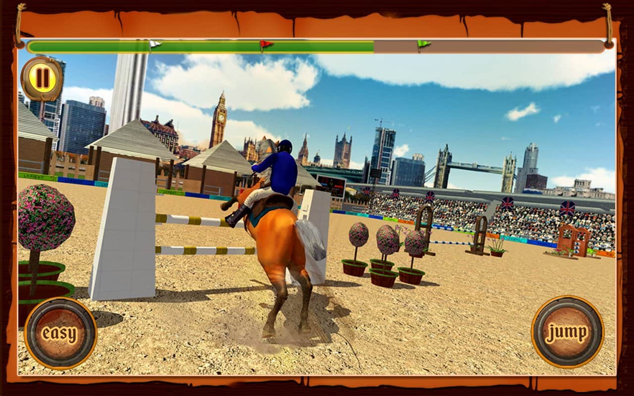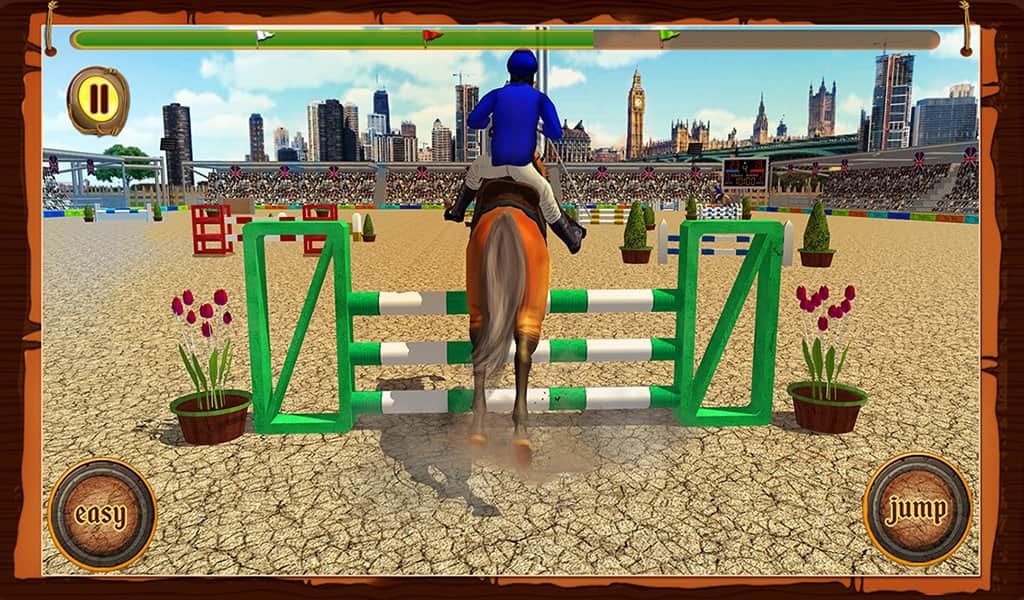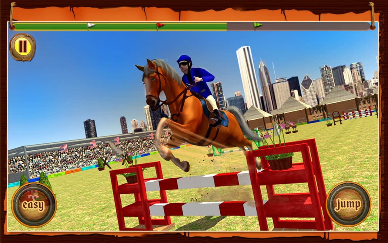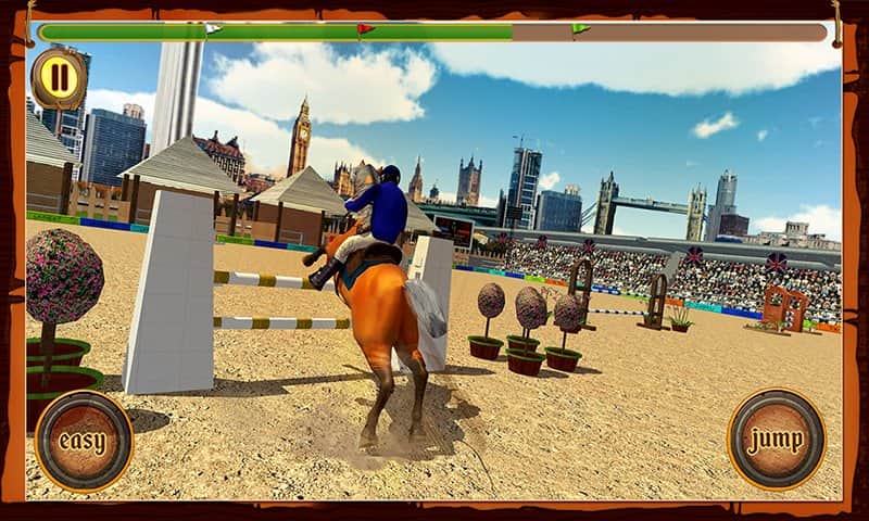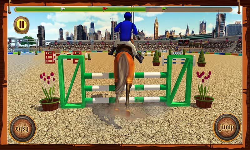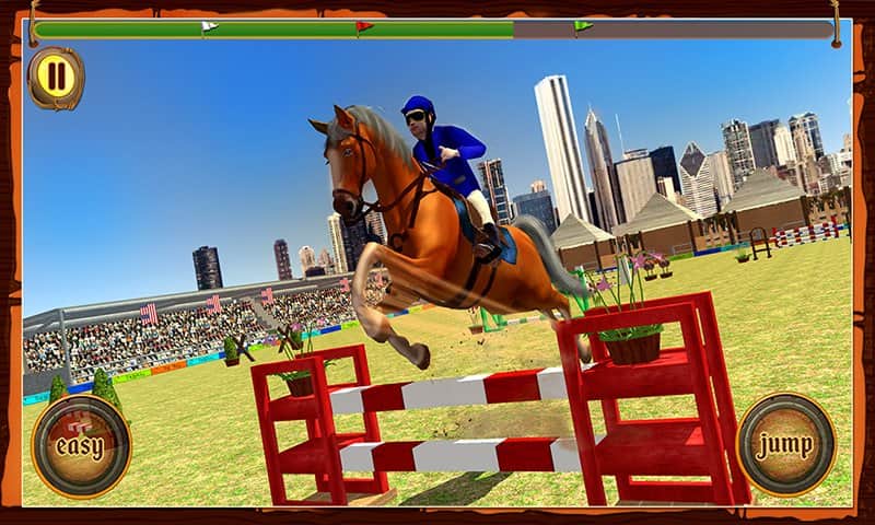 Atlı Cirit Yarışması – Android için bir spor oyunu, burada güzel bir atı yönetecek ve çeşitli görevleri yerine getireceksiniz. Atınızı ahırdan çıkarın ve parkuru hatasız bir şekilde geçerken çeşitli numaralar ve atlayışlar yapın. Atınızın tüm yeteneklerini sergileyin ve izleyicilere keyif vermek için atlayışlar yapın. Telefon ekranınıza zamanında dokunun ve atı engellerin üzerinden zıplatın, su engellerini ve diğer engelleri geçirin. Numara yapmak için doğru anı yakalayın ve yeterli puanı toplayın. Yeni atlar satın alın ve ahırınızı yeni örneklerle doldurun.