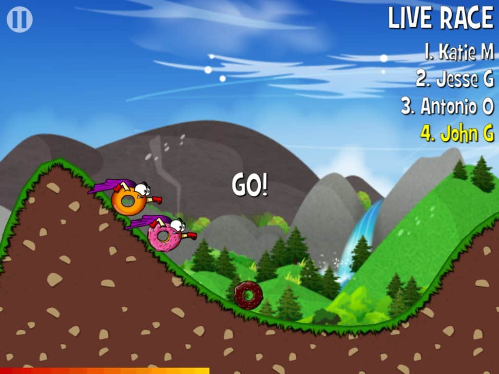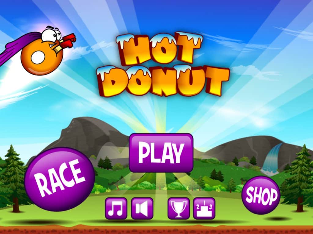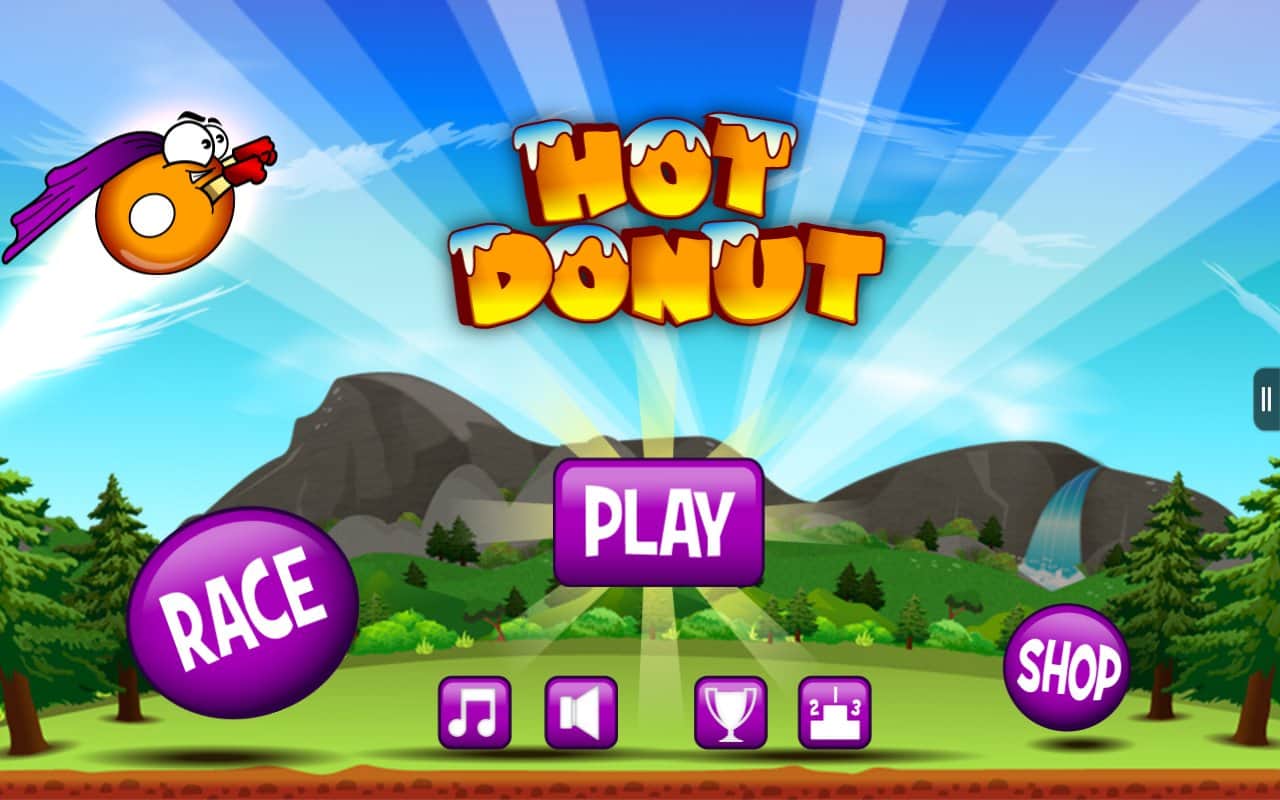 Sıcak Donut - Android için eğlenceli bir koşucu, burada süper bir halka yöneteceğiz. Renkli seviyelerde (yeşil çayırlar, kumlu plajlar ve diğerleri) zıplayarak, çeşitli uçurumları aşarak, oyun boyunca size büyük yardım edecek bonusları toplayarak kayıyoruz. Trampolinde hamur tatlınız süper kahramana dönüşerek havada önemli bir süre kalabiliyor ve bonuslar bu havada kalma süresini artırıyor.