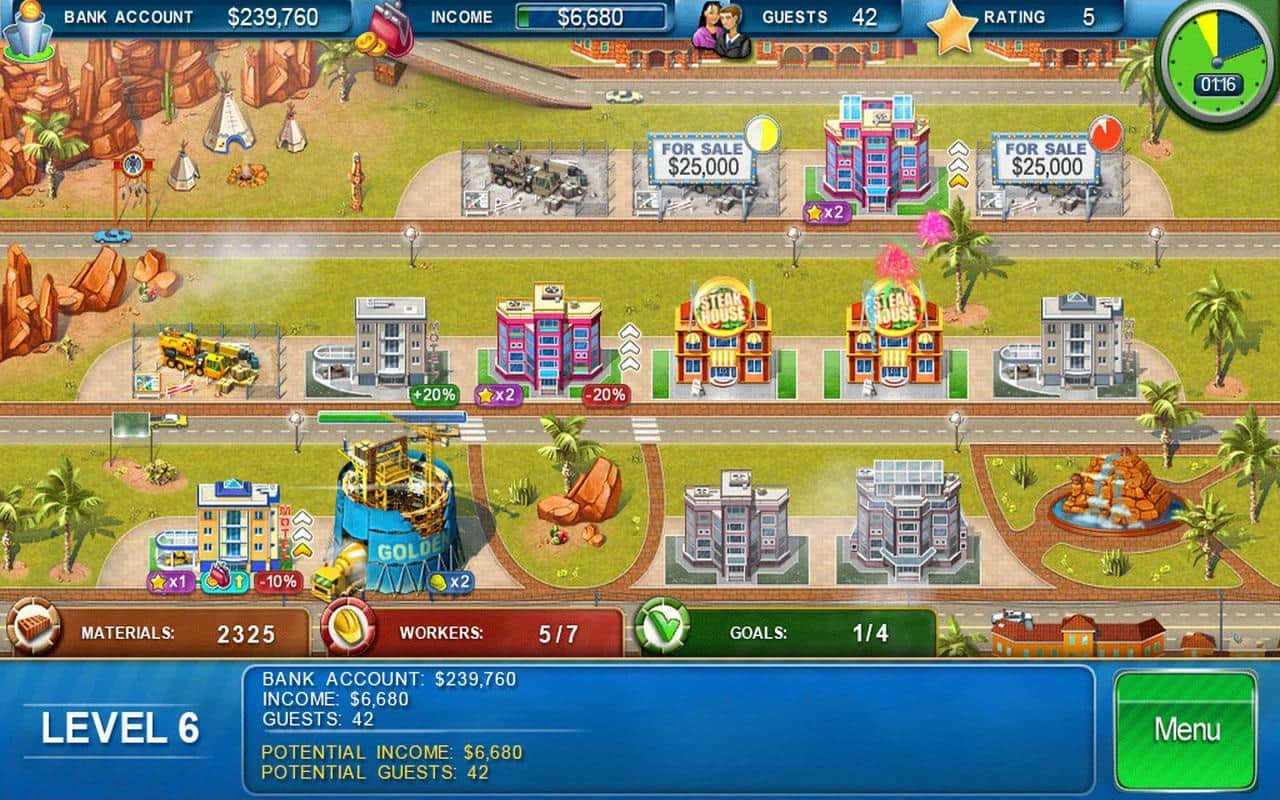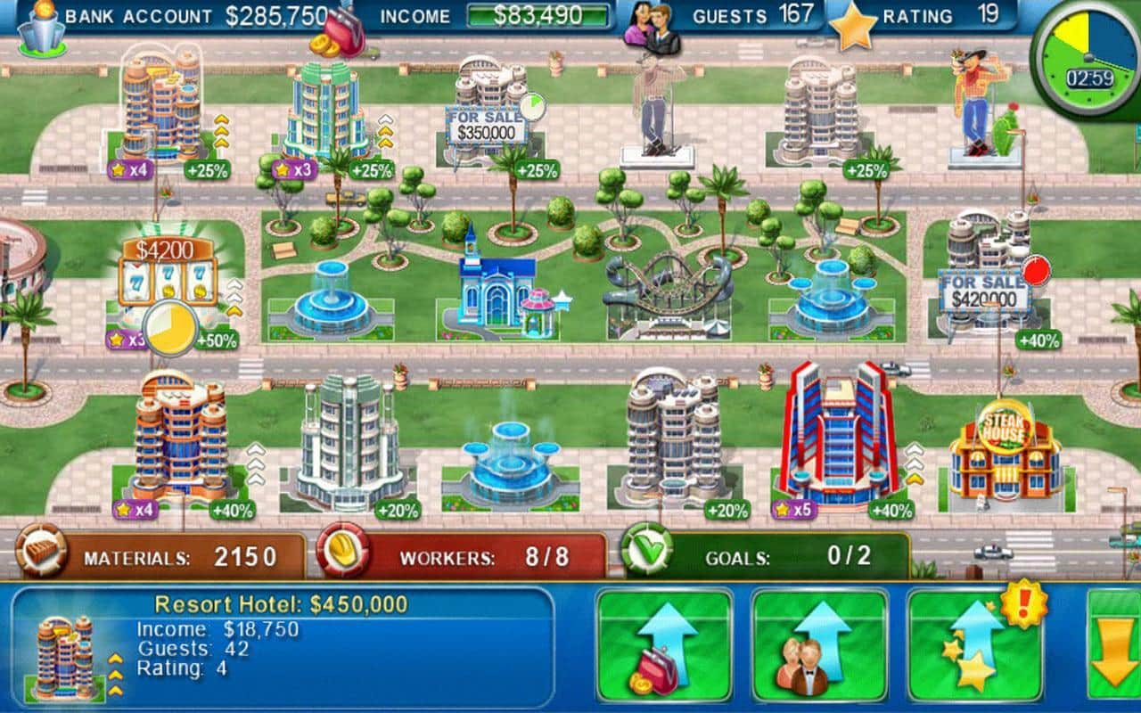 Otel Mogul: Las Vegas - bu oyun sizi tamamen düşünmeye zorlayacak. Bir otel zincirinin sahibi ve müdürü olacaksınız. Onların yönetimi de sizin üzerinize düşecek, bu yüzden son misafirler ve onların konforlarıyla ilgili hızlı kararlar vermeniz gerekecek; bu arada iflas etmemeye dikkat edin. Her birinin kendine özgü bir görevi olan birçok seviye var.