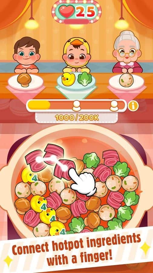 Hotpot Mania – Android için eğlenceli bir üçlü eşleştirme oyunudur, burada restoran ziyaretçilerini lezzetli yemeklerle besleyeceksiniz. Bu oyundaki ana göreviniz, aynı türdeki sebzeleri veya et ürünlerini bir çizgide birleştirip onlardan yemekler hazırlamaktır. Mükemmel seviyeleri tamamladığınızda jetonlar ve güçlendirmeler kazanın ve harika sonuçlar elde edin. Ziyaretçilerden gelen birçok siparişi alın ve bunları mümkün olan en kısa sürede yerine getirin. Nesneleri uzun zincirlere bağlayın ve kombine vuruşlar yapın. Liderlik tablosunda daha yükseklere çıkın ve arkadaşlarınızla rekabet edin.