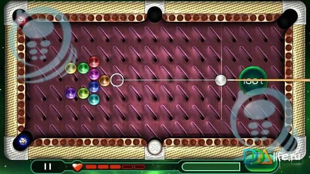 Symbian için oyun basit kontrolleri olan oldukça iyi bir arcade bilardo oyunudur. 3 zorluk seviyesi. Oyun - tek kişilik. Topları doğru kutuya sokmanız gerekiyor, bunun için 5 denemeniz var. Eğer sokarsanız - hayatınız artar, eğer kaçırırsanız - hayatınızı kaybedersiniz. Her şey son derece basit! Cesurca topa vurun ve seviyeden seviyeye geçin - sizi kül tablası, kapalı kutu ve birçok diğer zor ve çok zor seviyeler bekliyor.