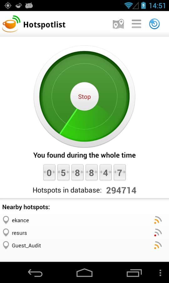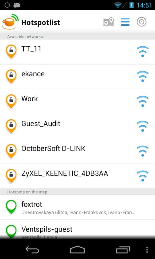 Hotspotlist - Ücretsiz WiFi, dünyanın dört bir yanında WiFi ağlarını bulmada size mükemmel bir hizmet sunacak harika bir Android uygulamasıdır. Ayrıca, şehri önceden tarayarak ve verileri sunucuya göndererek projeye katılma fırsatına da sahipsiniz. Sonuçları hem uygulamada hem de web sitesinde görebilirsiniz.