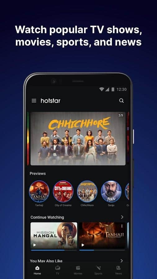 Hotstar - 9 farklı dilde en popüler filmleri, animasyonları, televizyon şovlarını ve canlı yayınları izleyin! Seçilen film veya diğer videolar hakkında ayrıntılı bilgi almak için belirli bir kapak resmine tıklayın: tür, başlık, çıkış yılı, kısa özet, izleme, favorilere ekleme, cihaza indirme, benzer aramalar ve daha fazlası. Tüm filmler birkaç kategoriye ayrılır: popüler şirketler (Disney, Pixar, Star Wars ve Marvel (Disney+)) tarafından yayınlanan orijinaller, Hollywood veya Bollywood filmleri, halk filmleri, Hint ve İngiliz şovları, diğerleri.