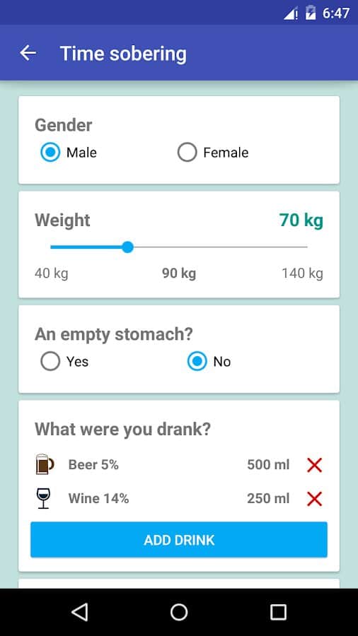 Hemen hemen herkes ara sıra alkollü içecekler tüketir. Kutlamalar için veya başka kişisel nedenlerle. Doğru alkol dozunu hesaplayabilmek çok önemlidir, böylece sabah baş ağrısı için hap yutmak zorunda kalmazsınız. "Ne kadar içmeliyim?" uygulaması bu can alıcı sorunun cevabını size verecektir. Size alkolün maksimum izin verilen dozunu detaylı bir şekilde açıklayacak ve alkolün vücudunuzdan tamamen atılması için ne kadar saat gerektiğini anlatacaktır. 10 içtiğiniz içeceği kadar hesaplama yapılır.