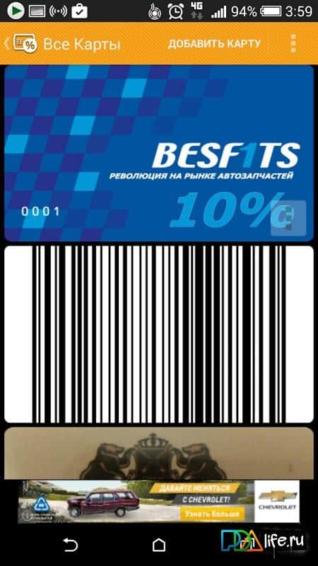 Yorumlar ile Хранитель дисконтных карт üzerinde Android