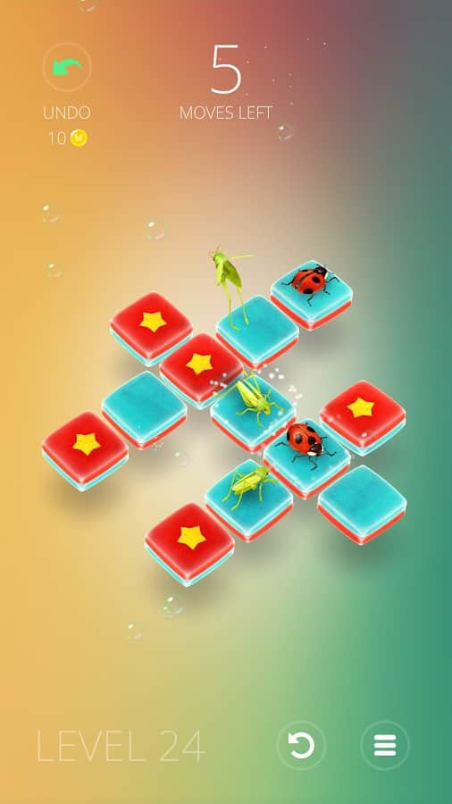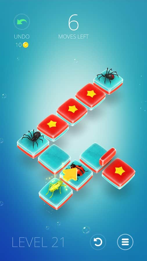 Humbug - Dahi Bulmaca – Android için eğlenceli bir oyun, burada çeşitli böcekleri yöneteceksiniz. Bu oyundaki göreviniz, çekirgeleri, örümcekleri, kelebekleri ve uğur böceklerini hücreler arasında hareket ettirip yıldızları toplamaktır. Tüm yıldızları en az hamleyle toplayın ve bir sonraki seviyeye geçin. Bu oyundaki her böcek, kendine özgü yeteneklere sahiptir; bazıları sadece ileriye hareket edebilir, diğerleri engellerin üzerinden atlayabilir ve uçabilir. Hareketlerinizi dikkatlice planlayın ve başarısız olursanız hamlenizi geri alın.