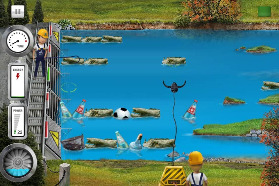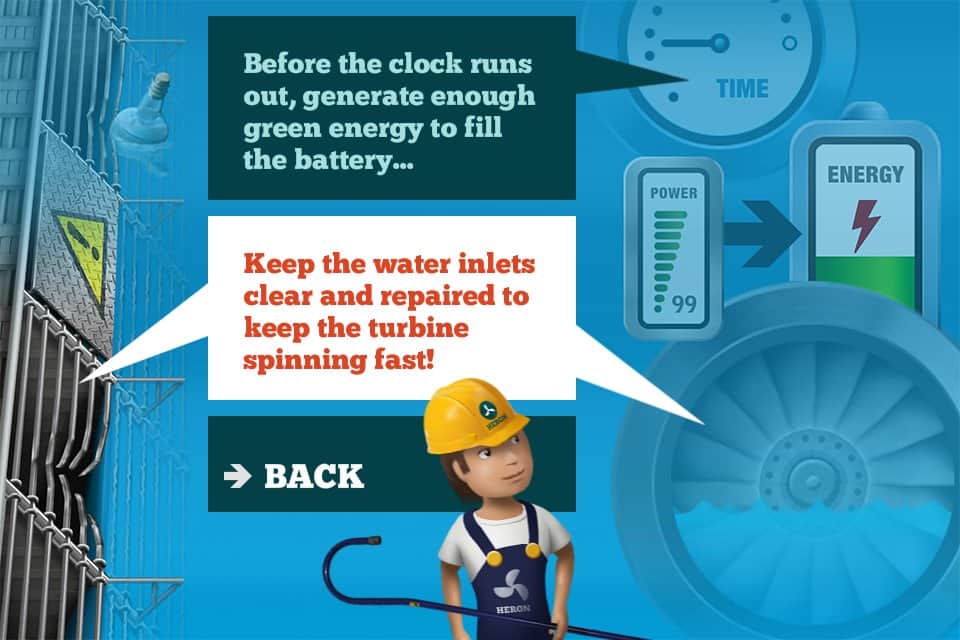 Hidro Oyun - Heron Corn Mill hidro türbininde çalışacağınız ve nehrin temizliğini gözlemleyeceğiniz bir oyundur. Nehri temiz tutmak için yüzeydeki çöpleri çıkarmalı, ekranları hasardan korumalı ve türbinlerin bakımını yapmalısınız. Sürekli değişen hava koşulları, çeşitli çöpler ve kurtarılması gereken yüzen koyunlar ile karşılaşacaksınız. Bu oyunda başarı elde etmek ve elektrik enerjisi kazanmak için aynı anda birden fazla görev yapmanız gerekecek.